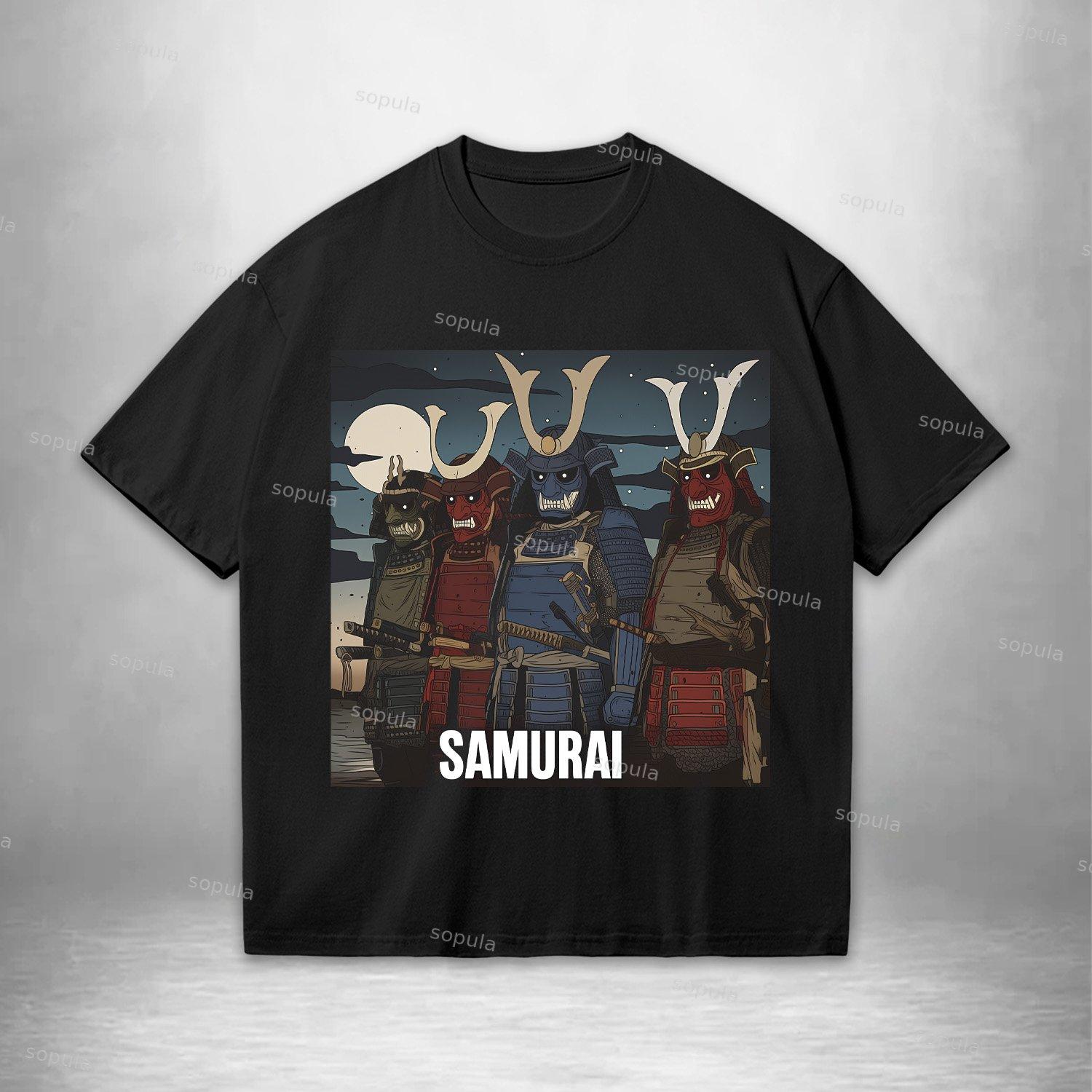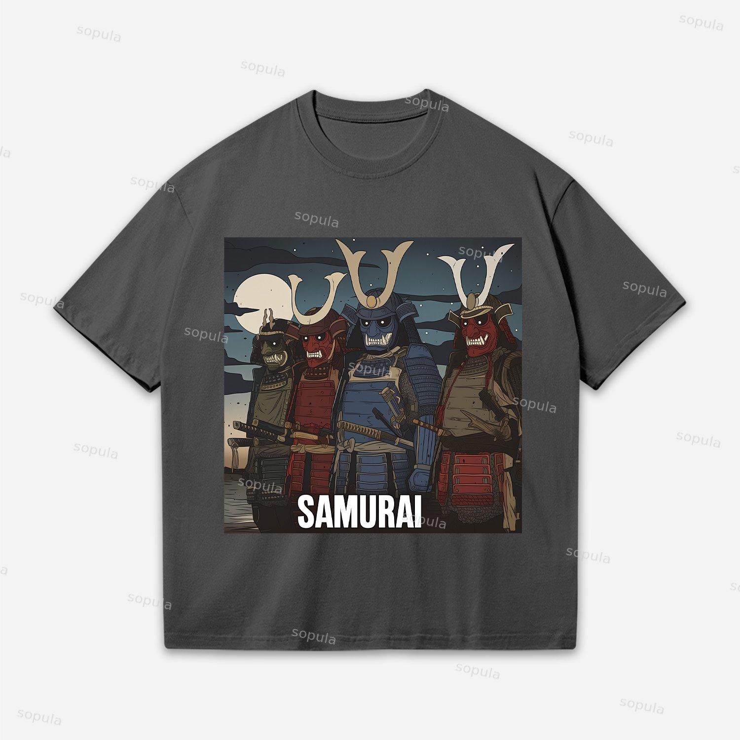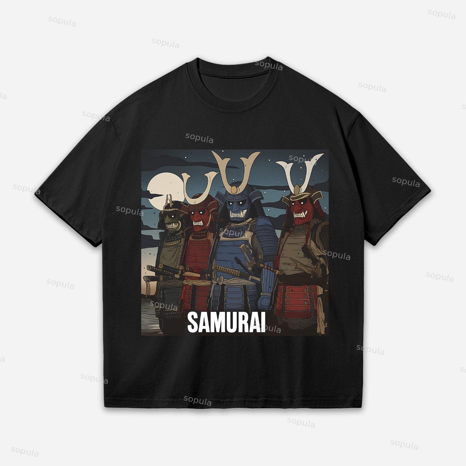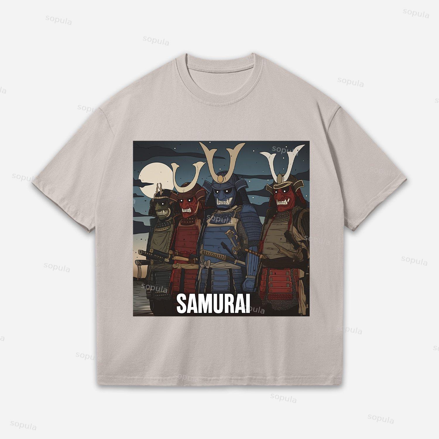 Samurai Warriors-traditional Ukiyo-e Style Oversized Cotton T-shirt