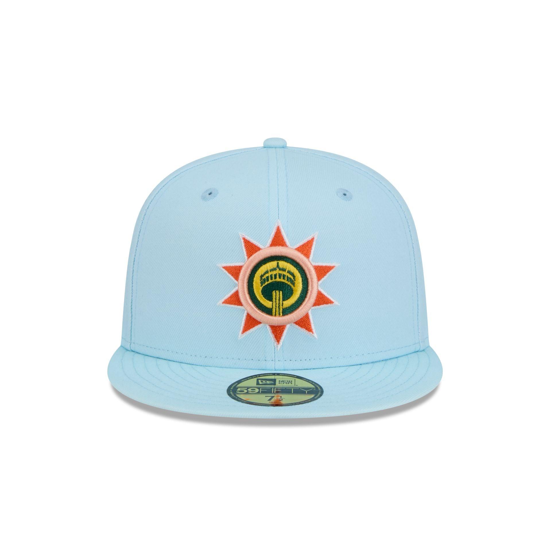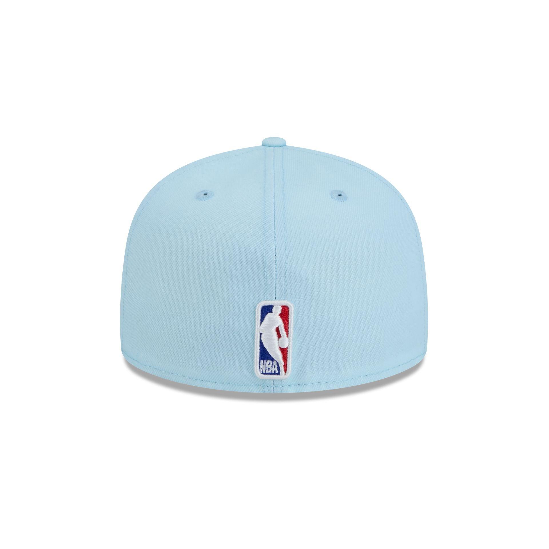 The San Antonio Spurs 2024 City Edition Alt 59FIFTY Fitted Cap features an embroidered Spurs logo at the front panels with an NBA Logoman at the rear. Additional details include a San Antonio, Texas patch at the right-wear side and a gray undervisor.