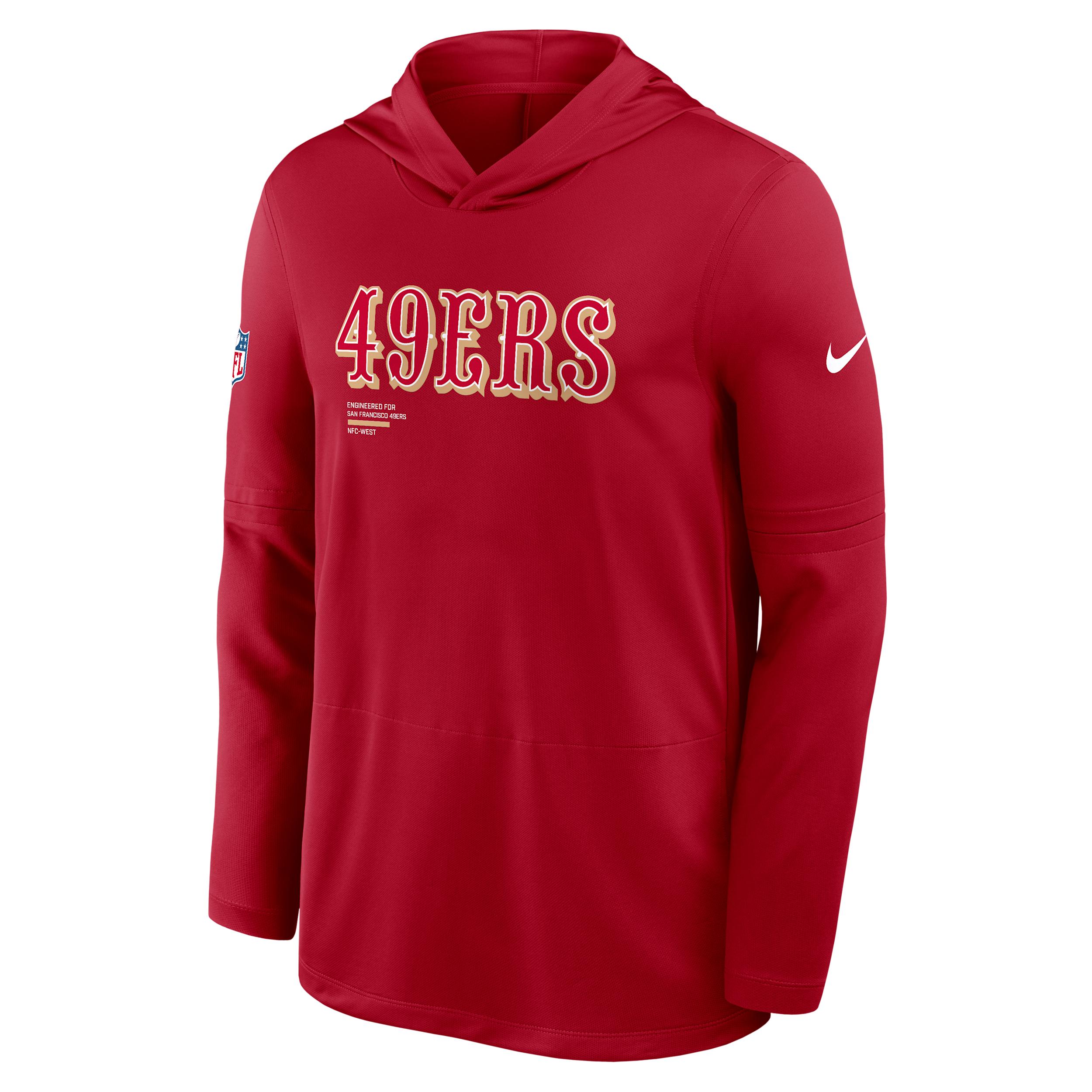 Perfect for lightweight coverage, the Pure Fury Sideline Top helps you comfortably support the San Francisco 49ers. It features sweat-wicking technology for ultimate comfort. Benefits:Nike Dri-FIT technology moves sweat away from your skin for quicker evaporation, helping you stay dry and comfortable. Removable sleeves help add versatility for various conditions. [] Product Details:Front pocket. Hood without drawstring. 100% recycled polyester. Machine wash. Imported. Style: 03B96DL73; Color: Red; Size: 3XL; Gender: Male; Age Group: Adult | San Francisco 49ers Pure Fury Sideline Men's Nike Dri-FIT NFL Long-Sleeve Hooded Top in Red, Size: 3XL | 03B96DL73-P8B