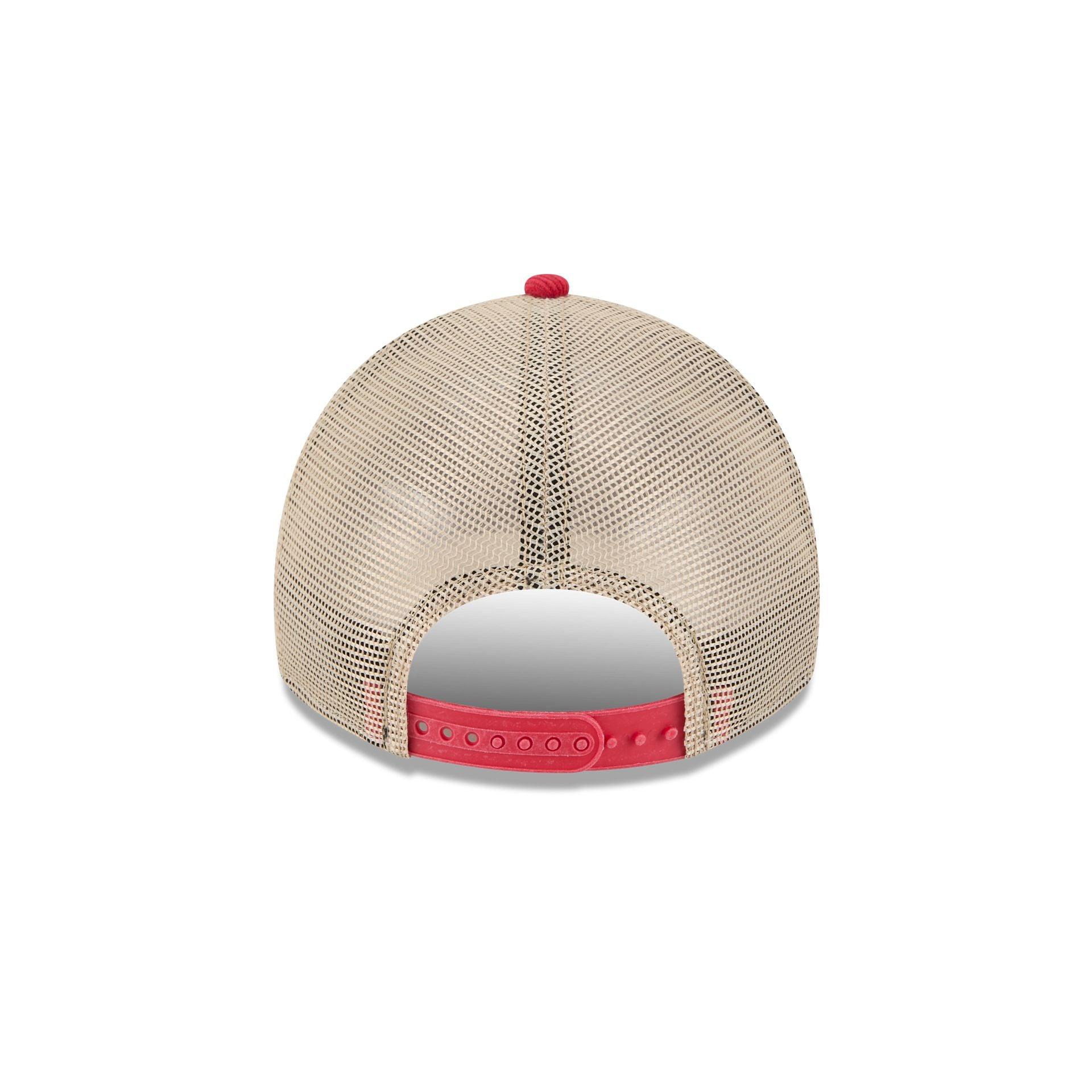 The San Francisco 49ers Vintage Landscape 9TWENTY A-Frame Trucker features an embroidered 49ers Vintage Landscape patch at the front panels with a team logo at the right-wear side. Additional details include an adjustable snapback closure at the rear and a gray undervisor.