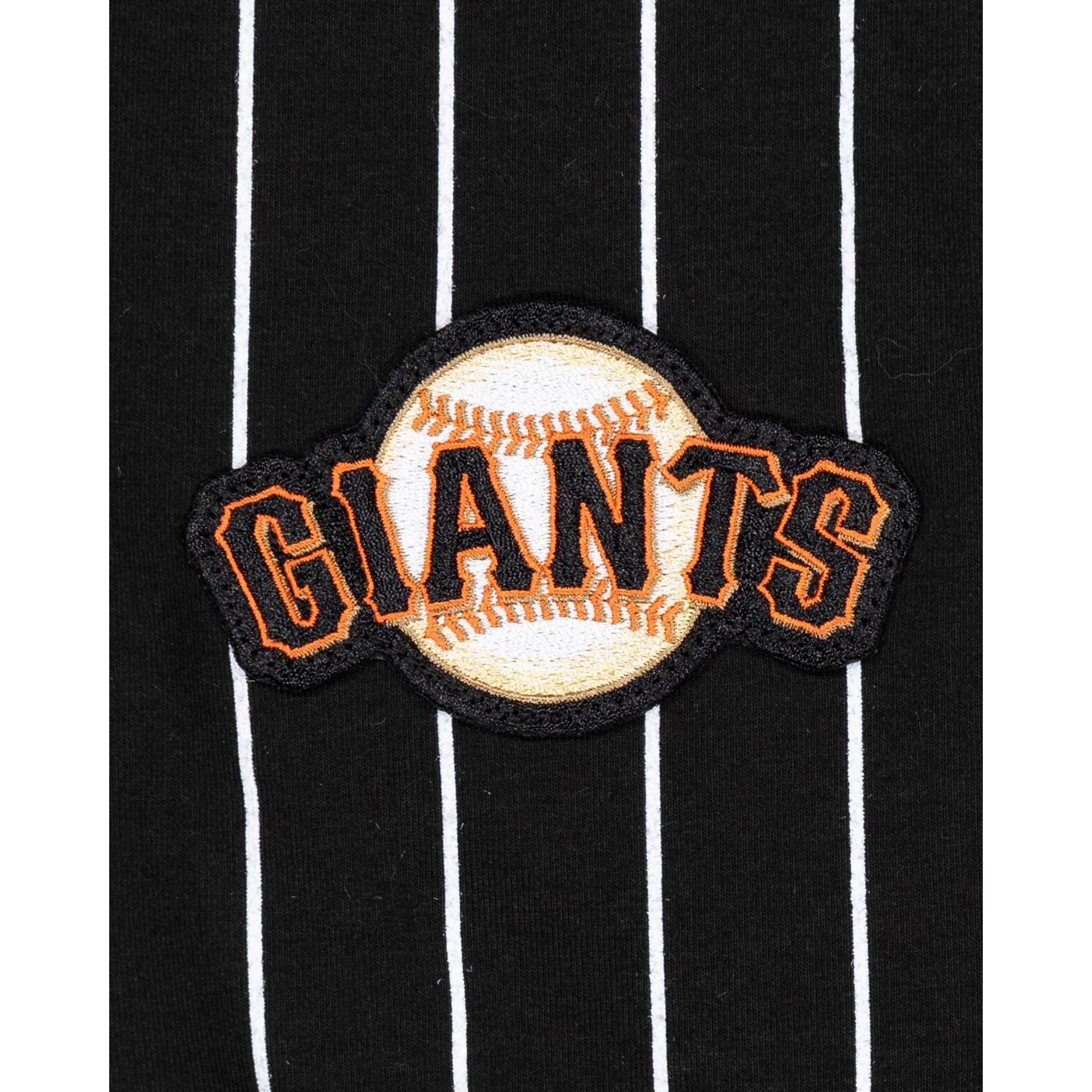 The San Francisco Giants Logo Select Pinstripe Jogger features a chenille applique Giants logo and embroidered wordmark at the left leg with an alternate team logo at the right ankle. Fabric: 52% polyester, 42% cotton, 6% spandex