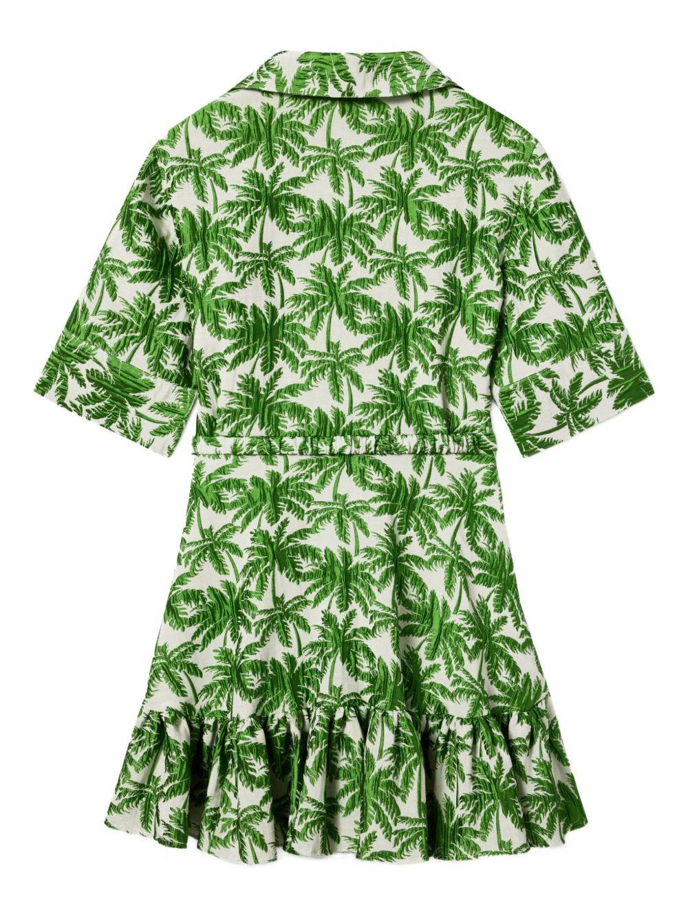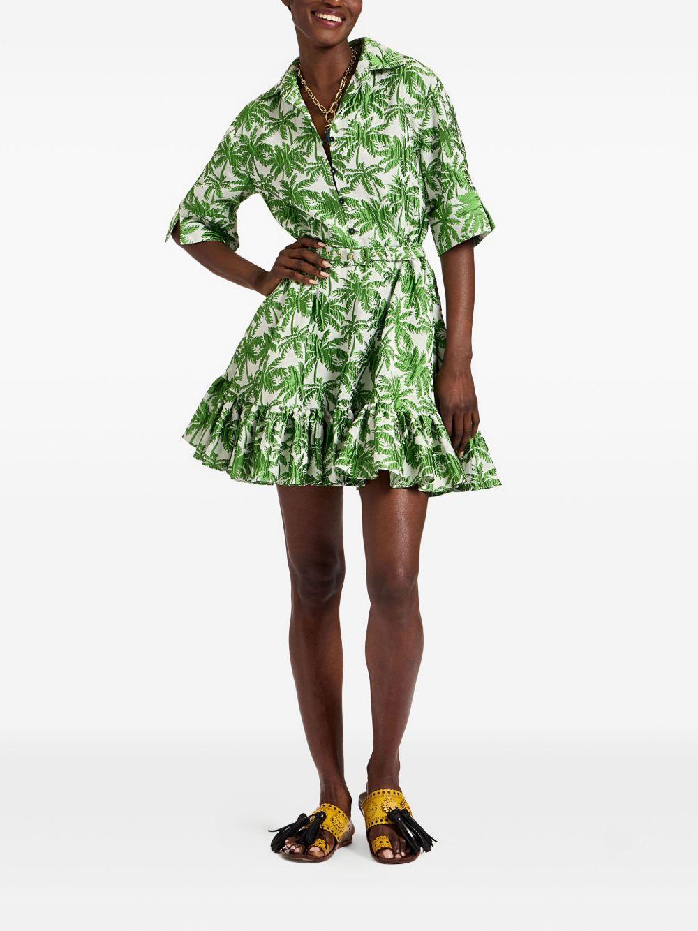La DoubleJ San Pietro palm-print ruffled mini dress | Green | Acetate/Viscose/Polyester/Elastane | Day Dresses | Dresses | Clothing | Women