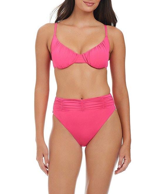 Sanctuary Beach Goddess Excess Solid High Waist High Leg Shirred Swim Bottom