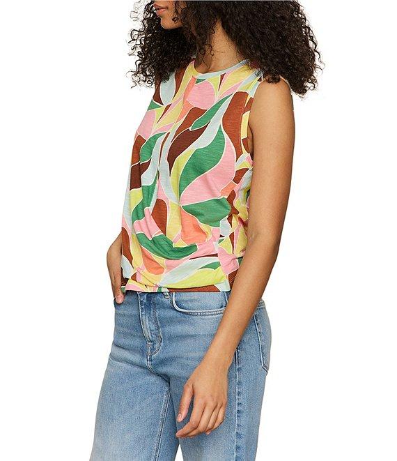 Sanctuary Printed Crew Neck Sleeveless Cotton Slub Jersey Draped Front Tank