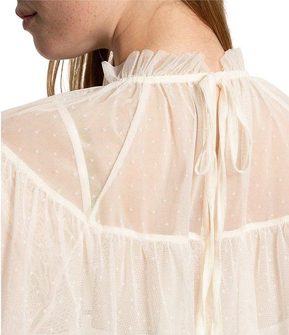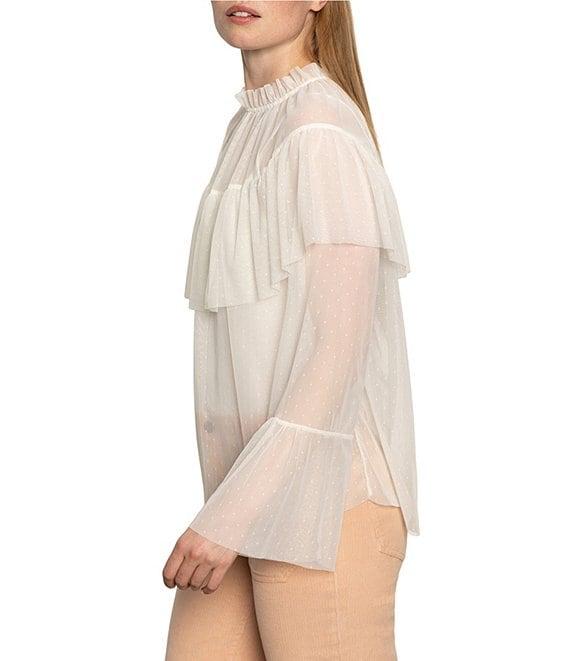 Sanctuary The Ethereal Dotted Mesh Ruffle Mock Neck Bell Sleeve Blouse