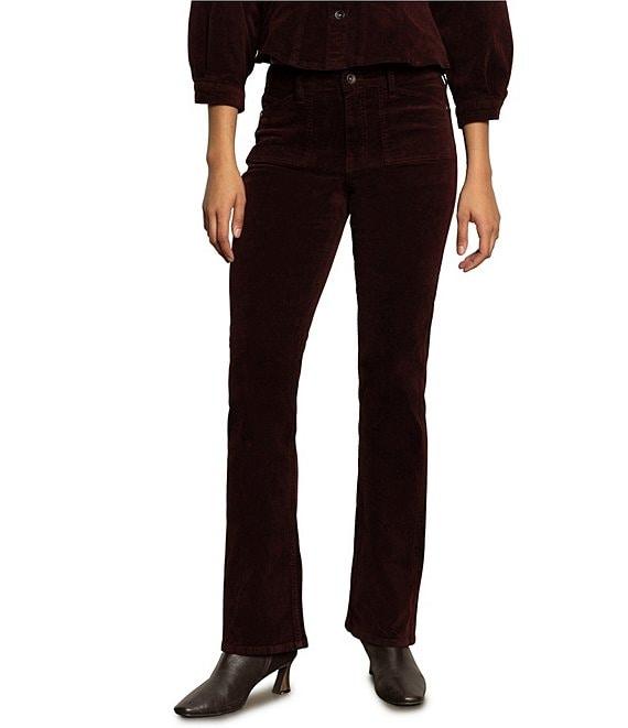 From Sanctuary, these pants feature: Velveteen fabrication Standard rise waistline Zip-fly and button front closure Bootcut leg silhouette 2 front pockets 2 back pockets Full length Approx. 10.5" front rise, 33.5" inseam, 18" leg opening Cotton/Spandex Machine wash/Tumble dry Imported.