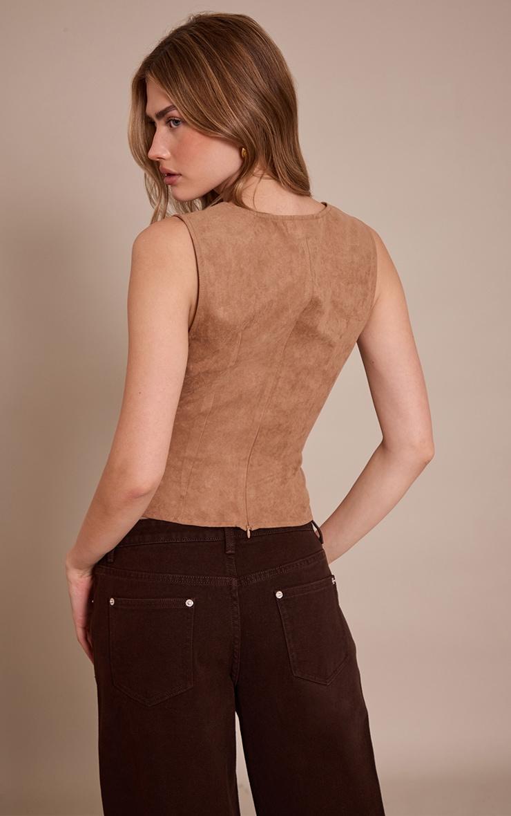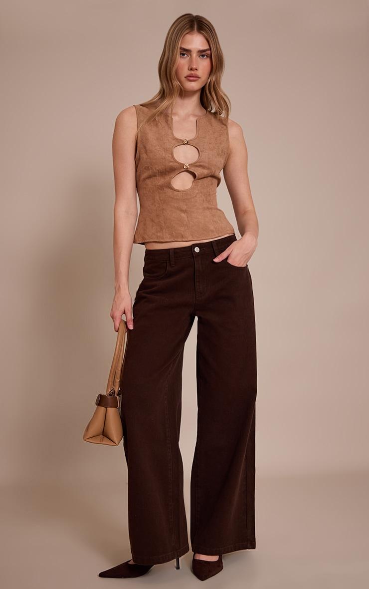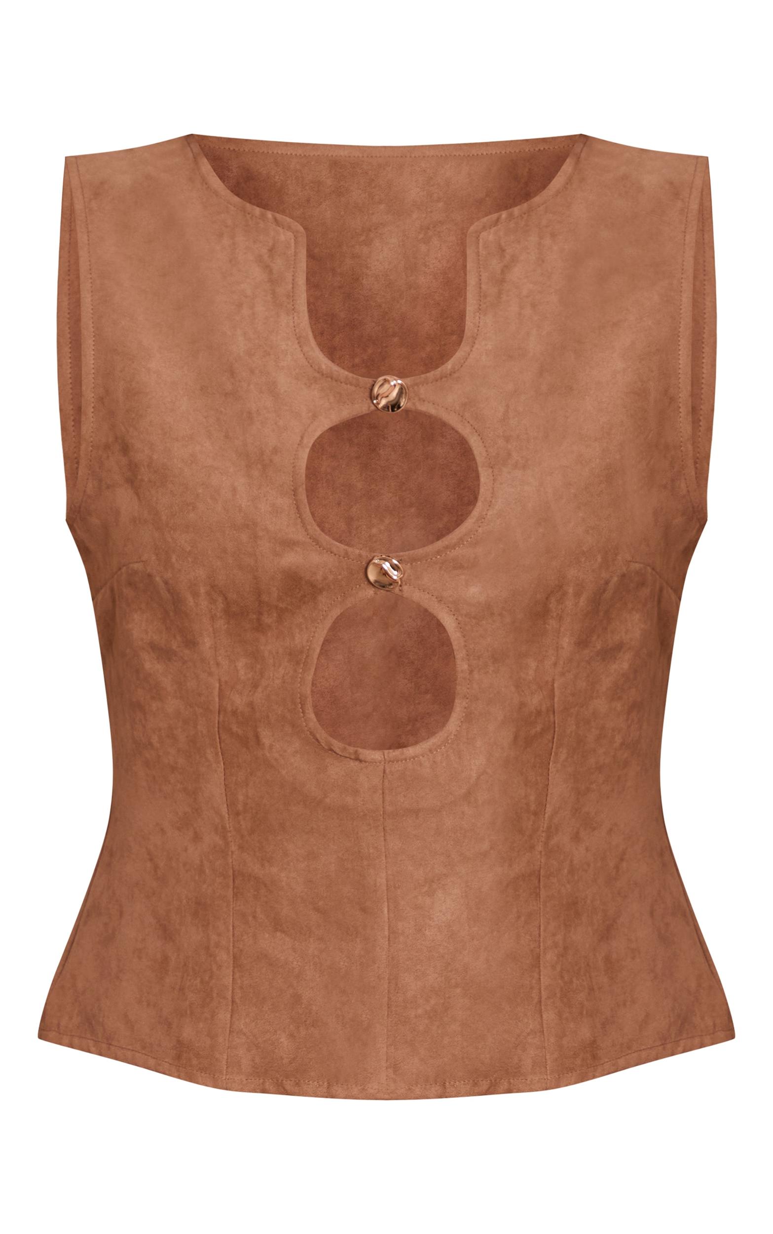 Give your look a luxe update with the sand faux suede fitted cut out long top. Designed in soft faux suede with daring cut out detailing, this piece strikes the balance between bold and sophisticated. Wear with tailored pants and pointed boots for chic contrast.Length approx 48.5cm/19inch (Based on sample size US 4)Model wears size UK 8/ EU 36/ AUS 8/ US 4Model Height - 5ft 8inchp]:!mb-4inch>Brand: PrettyLittleThingCategory: TopsProduct type: Vest TopColor: SandMaterial: Faux SuedeOccasion: Evening