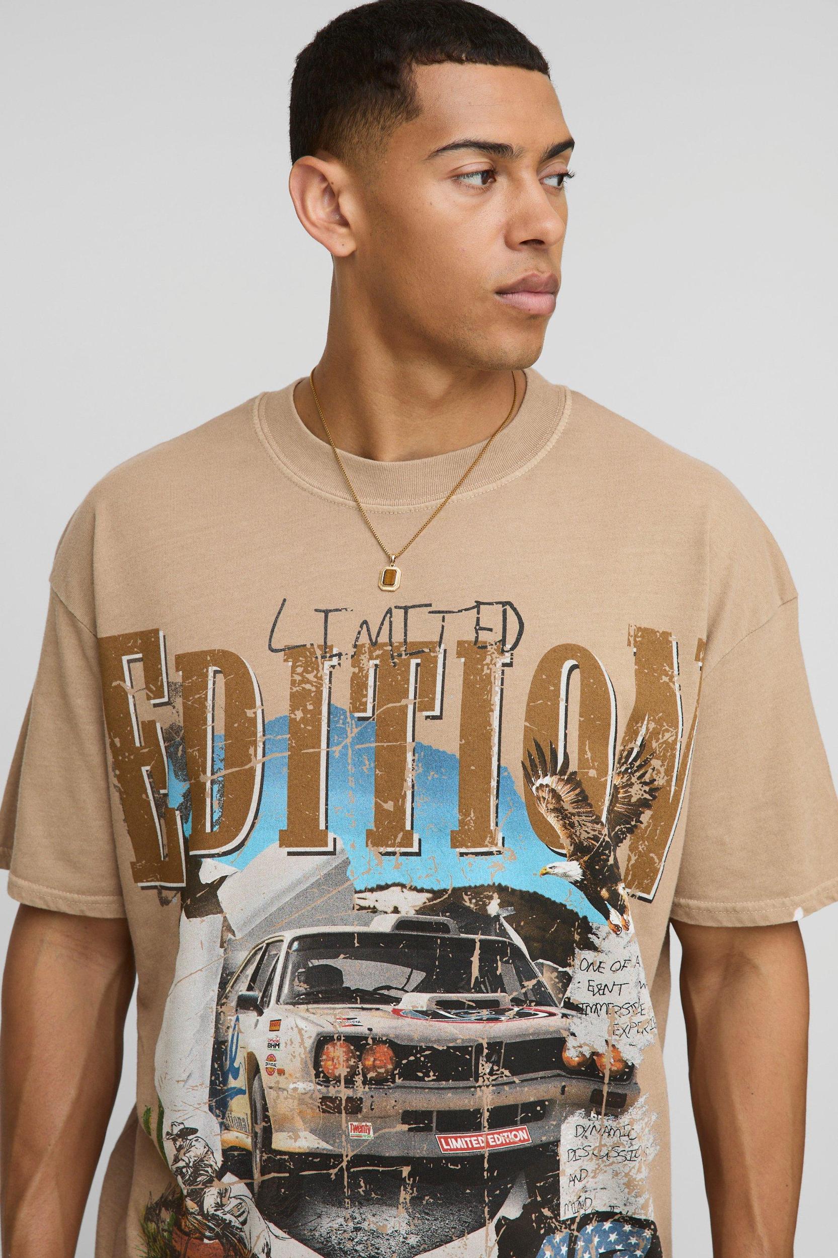 Sand Oversized Extended Neck Western Edition Graphic T-Shirt | boohooMAN USA