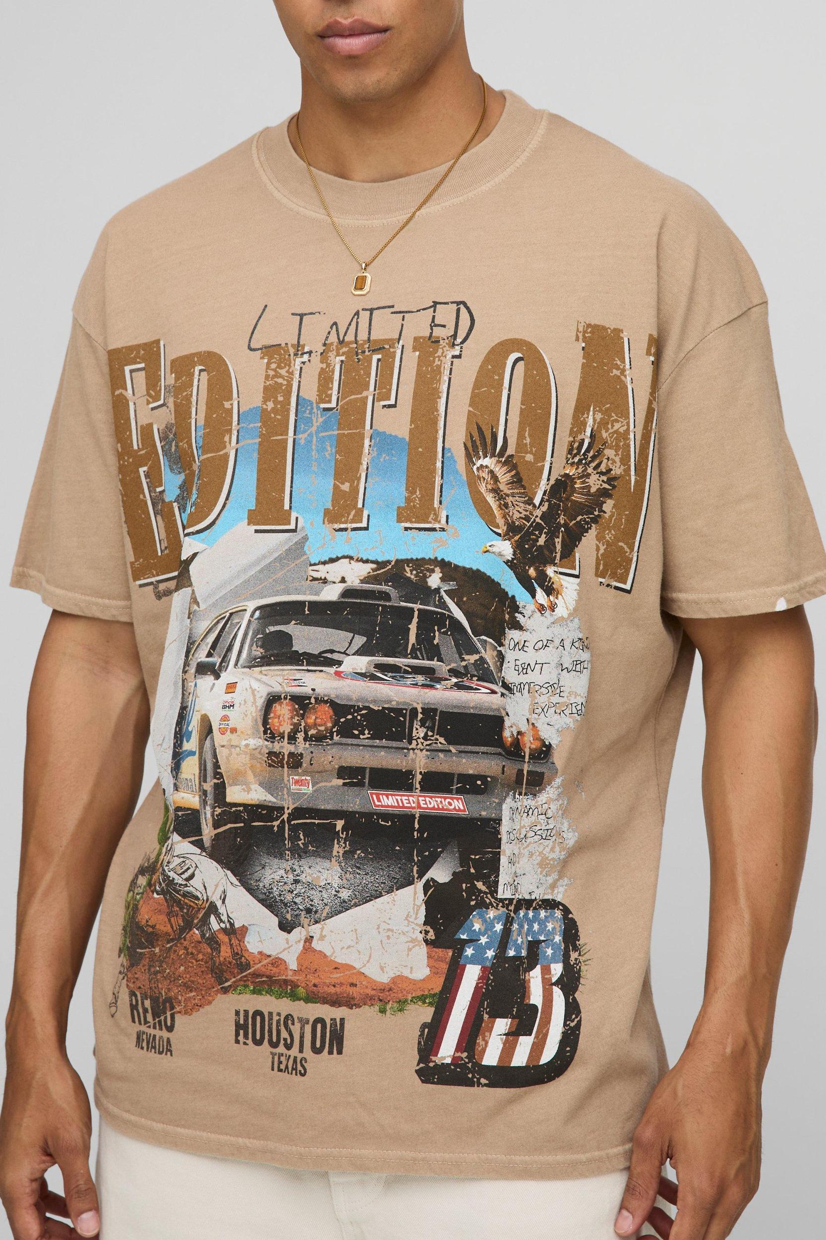 Sand Oversized Extended Neck Western Edition Graphic T-Shirt | boohooMAN USA Product Image