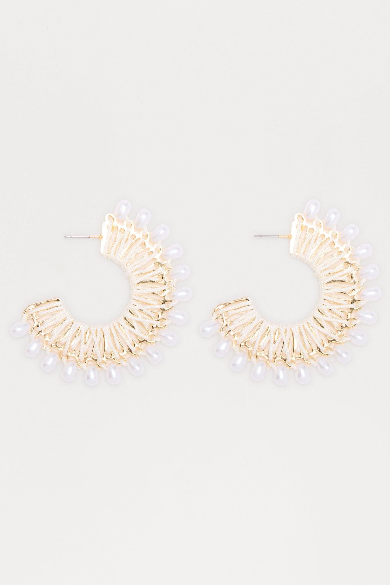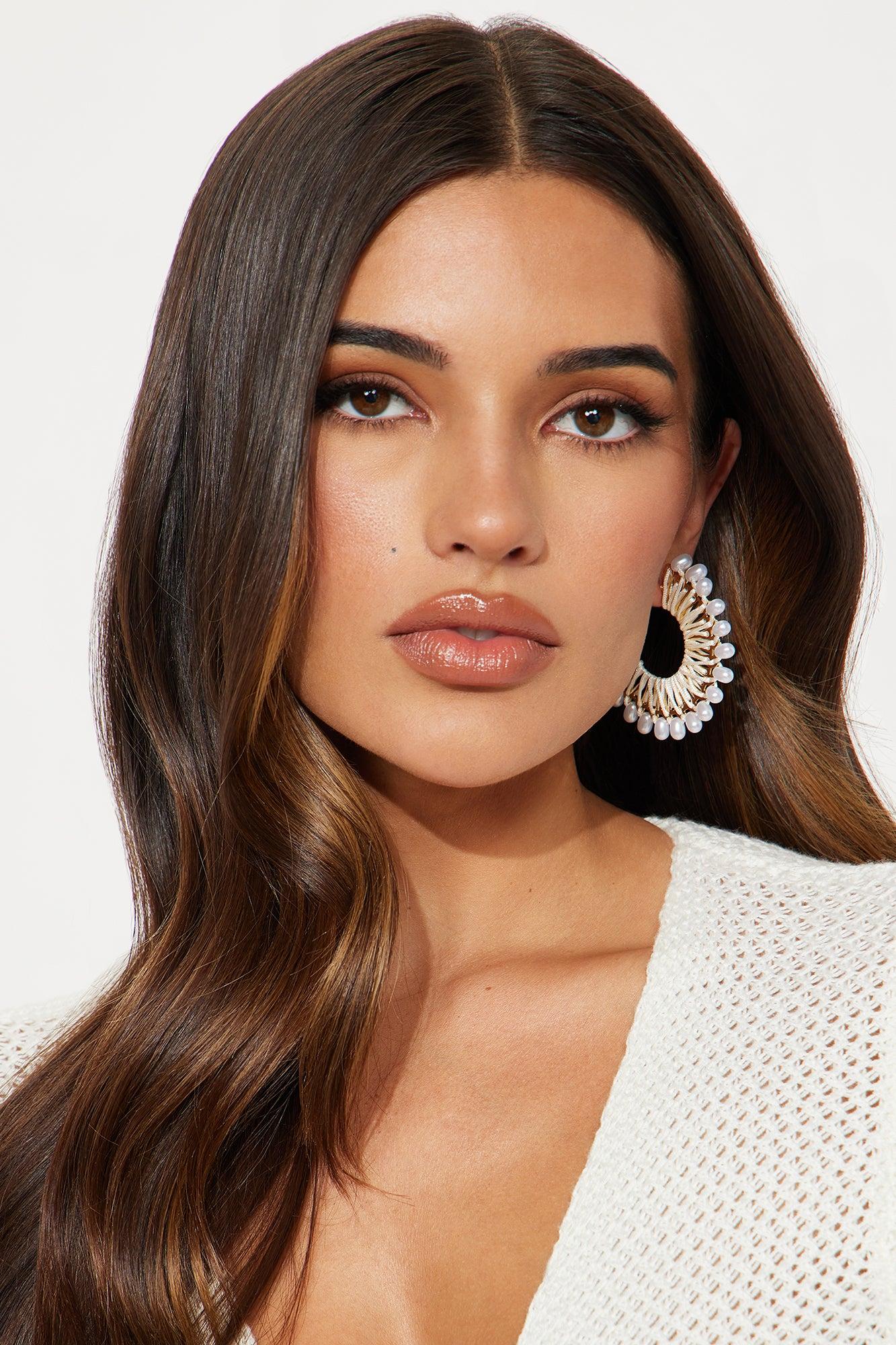 Available In White/Gold. Hoop Earrings Straw Material Pearl Detail Post Back Closure Final Sale Imported