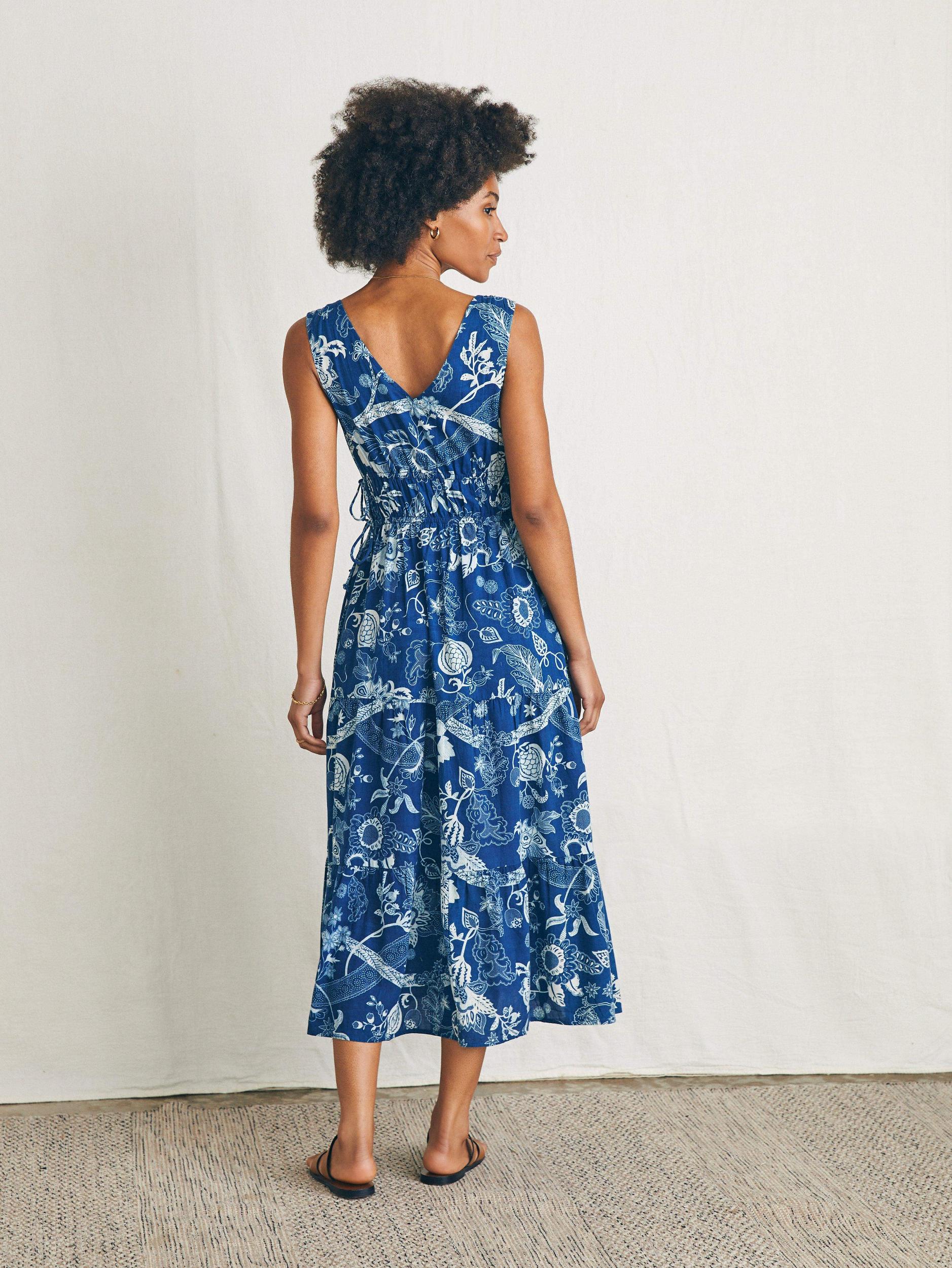 Easy, charming, and endlessly versatile, this flowing dress exudes an air of romance without the fuss. We designed it with an elasticized waist with self-ties at the side seams for an adjustable, figure-flattering fit. Fit: Fitted, Length: 50 1/2" Detail: Elastic tunnels at waistband and self ties at side seams. Material: 100% Organic Cotton, Elastic Model: Gabrielle is 5’9 wearing size Small Care: Turn inside out. Machine wash cold separately. Delicate cycle. Do not bleach. Tumble dry low. Remove promptly. Cool iron when needed. WDU2431-BJF