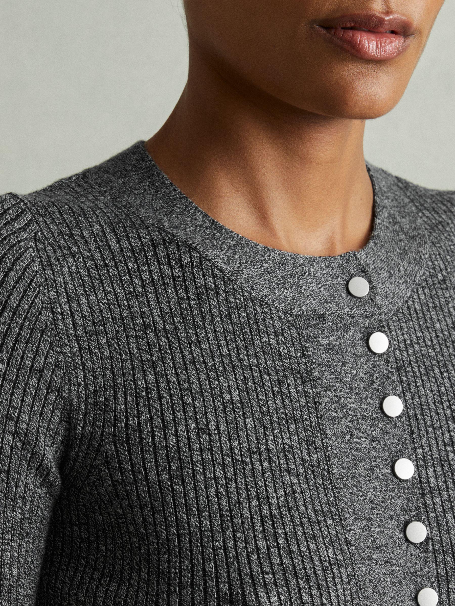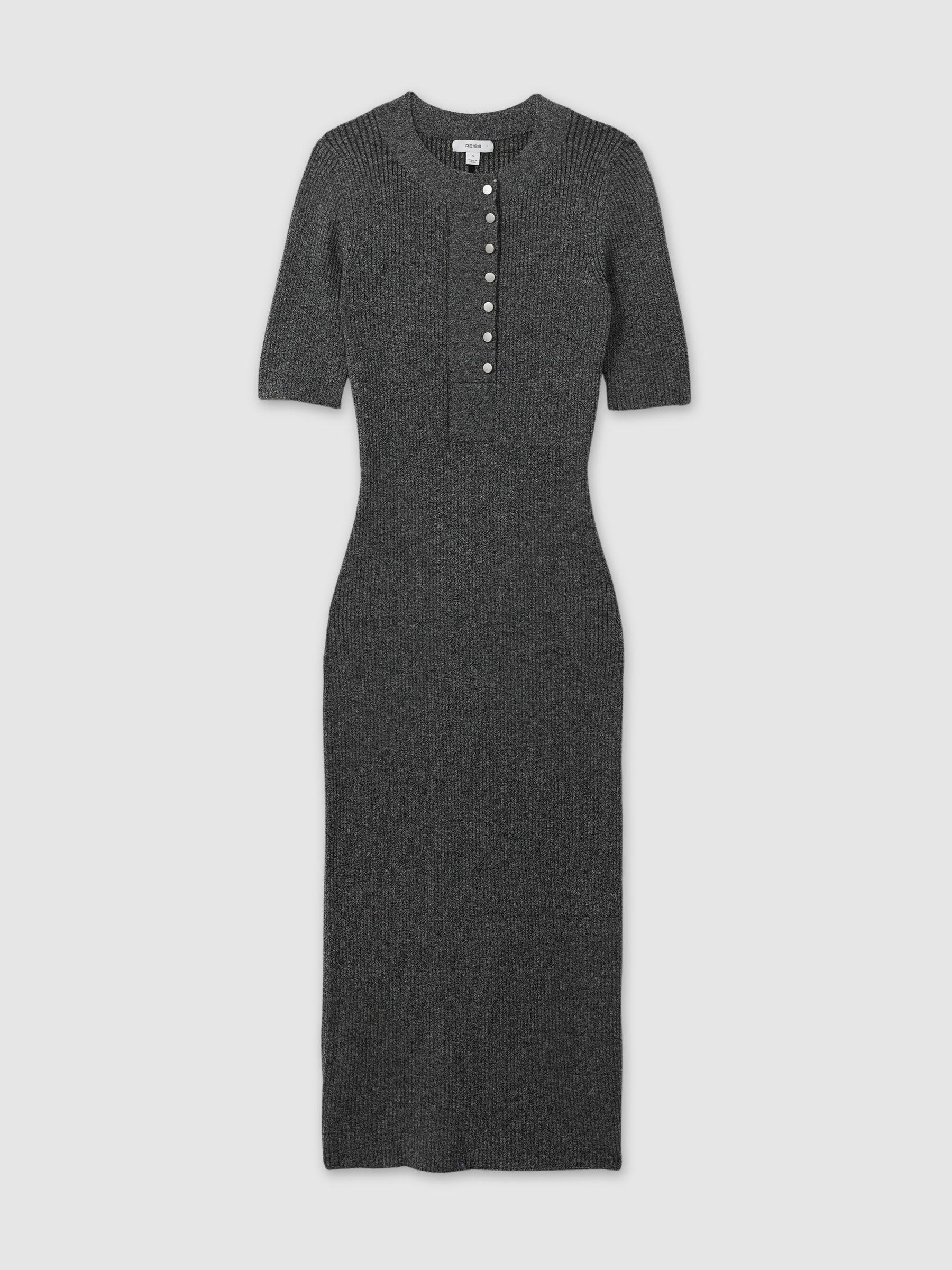 The Sandy is a new iteration of our beloved knitted dress. Made from a soft wool blend with a ribbed finish, it displays a stylish marled effect. Press-studs fasten the neckline and a contrast detail runs through the back. Wool blend Marled finish Ribbed Press-stud front-closure Contrast seam detail to reverse Midi length The model is wearing a size S Measurements of model: Height 5 10" / 177.8cm