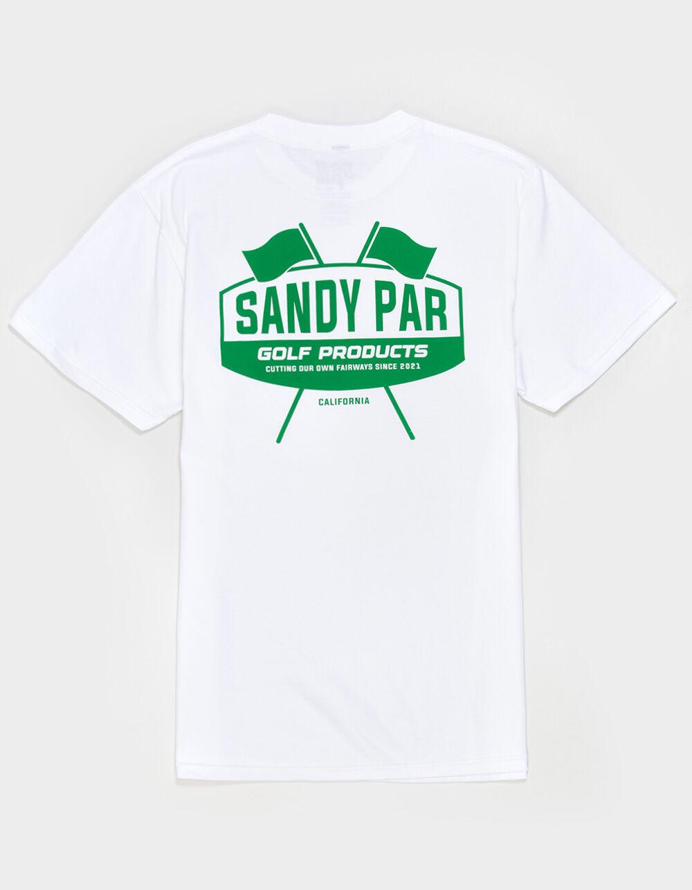 Sandy Par Flags Tee. Graphic screened at left chest. Large graphic on back. Crew neck. Short sleeve. 100% Cotton. Machine wash. Imported.