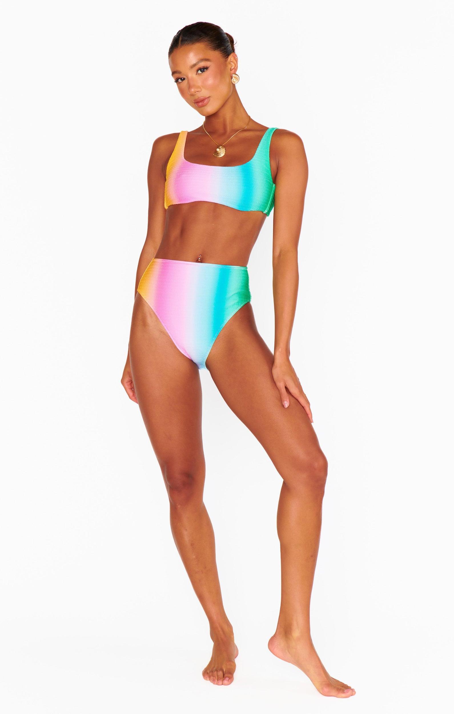 Elevate your vacay with the Sanibel Top! This ombre swimmie displays moderate coverage and an adjustable tie back. Pair with our matching Palma Bottom in Ombre Contour Scrunch.