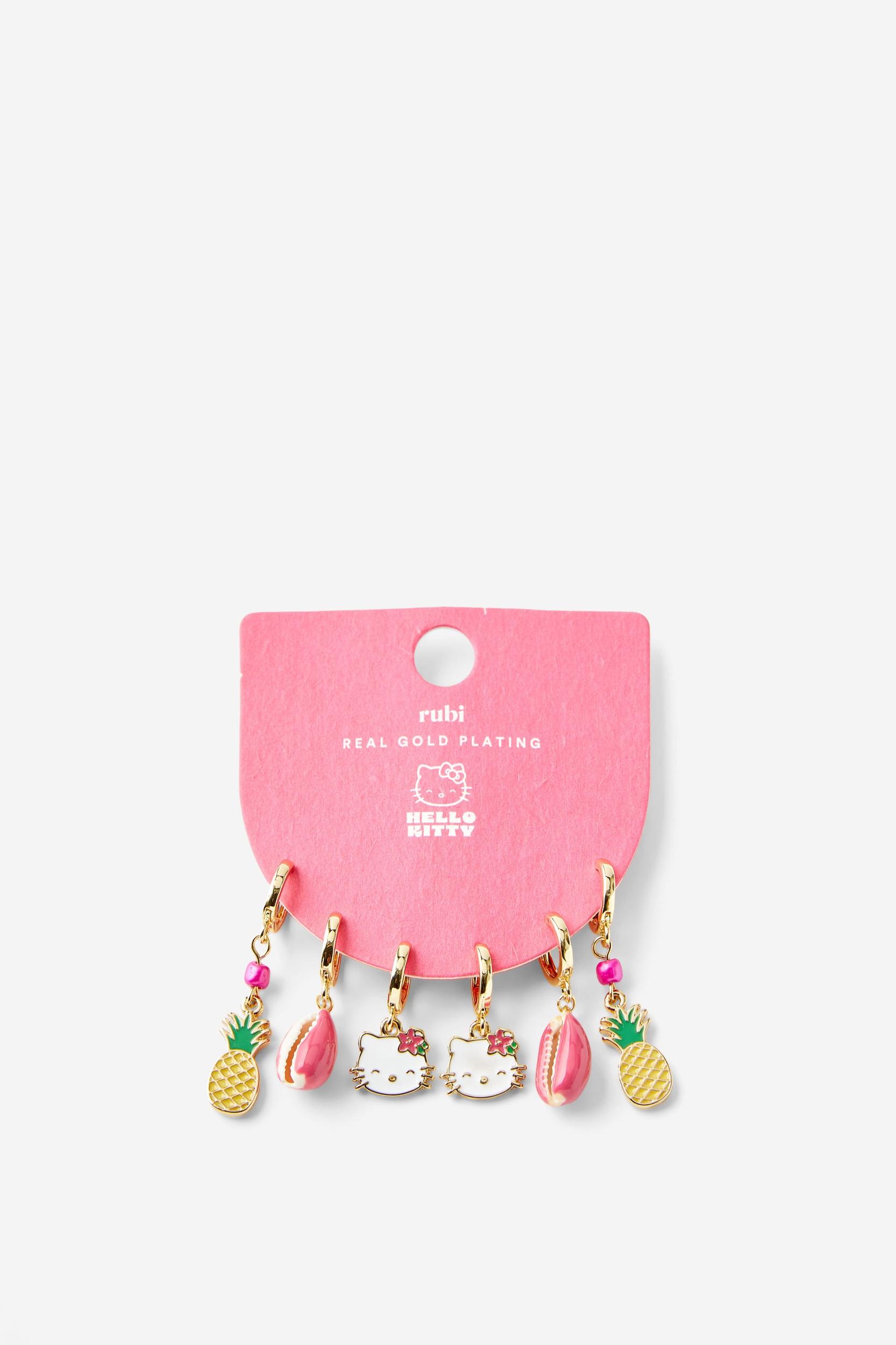 Sanrio 18k Gold Plated Hello Kitty Heart Hoop Earrings, Women's, Yellow Gold Tone
