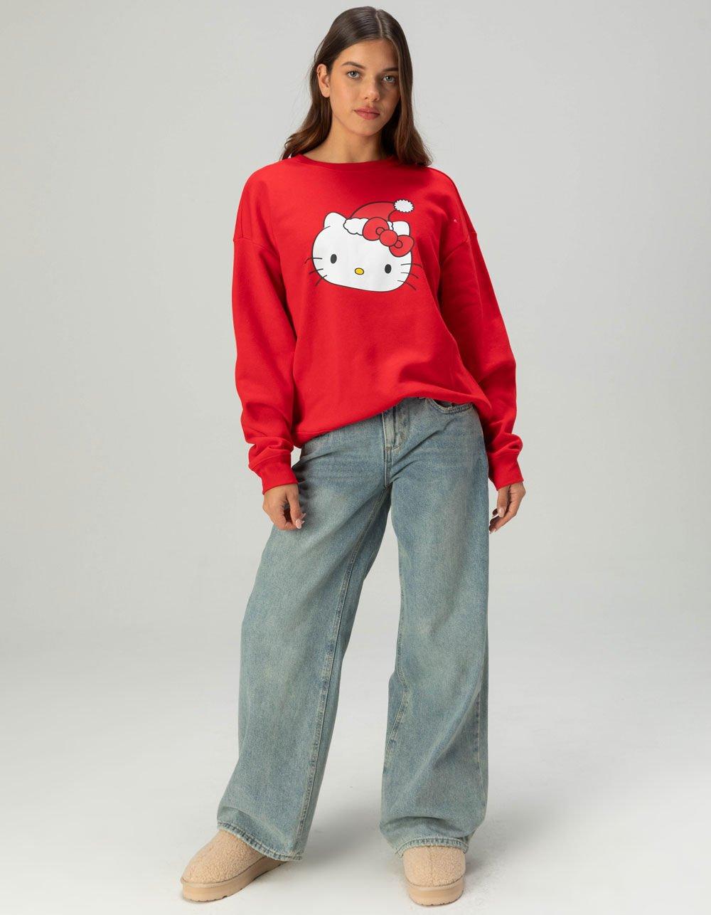 SANRIO Hello Kitty Santa Hat Womens Crewneck Sweatshirt - RED