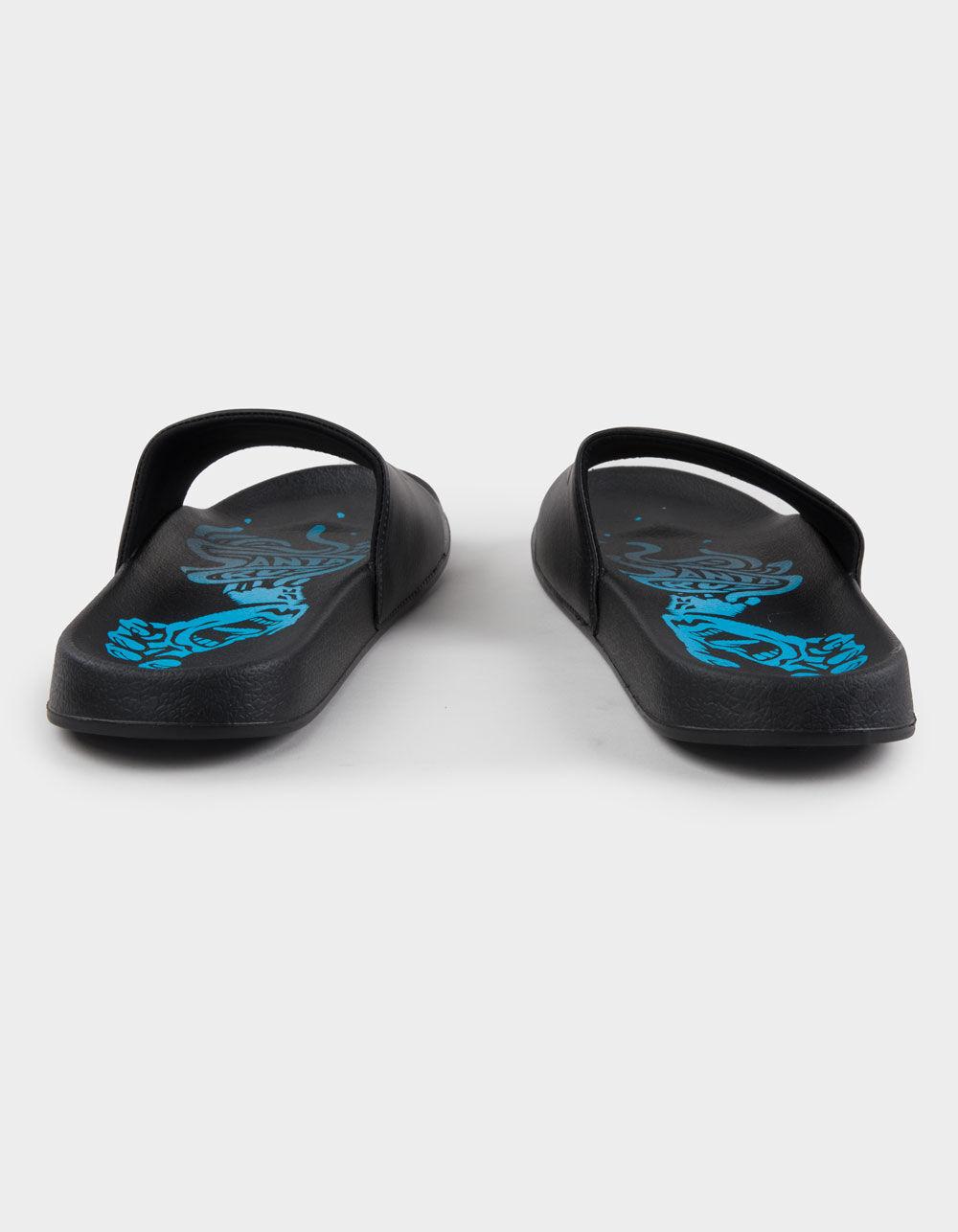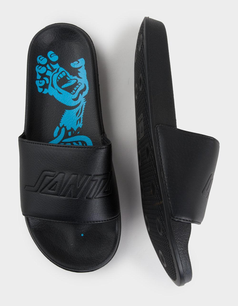 Santa Cruz Vein Hand Slide Sandals. These custom polyurethane slide sandals feature embossed straps and Screaming Hand graphics screened on the footbeds. Polyurethane construction. Imported.