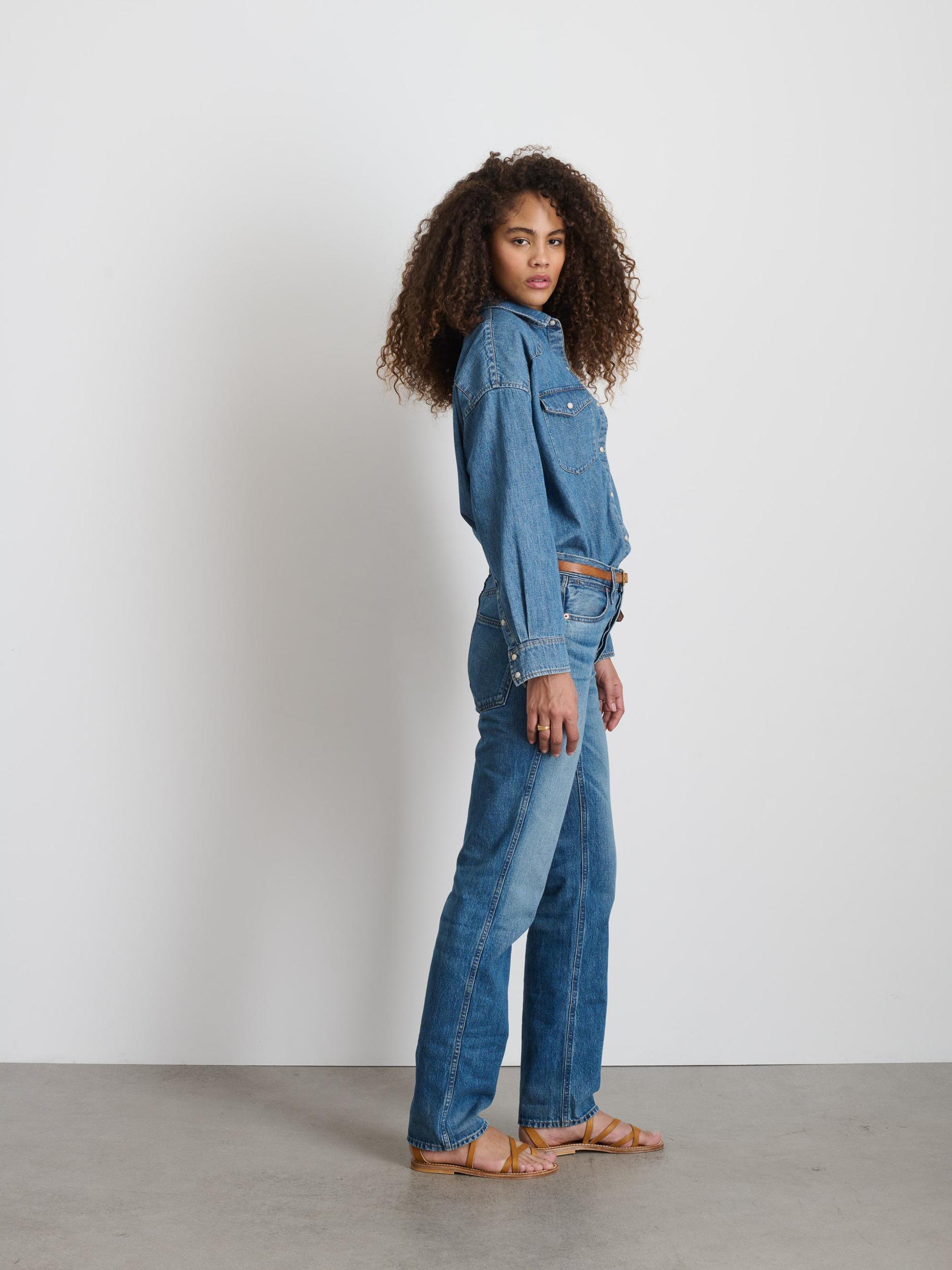 Everything you love about vintage chambray, without having to leave your house and vintage shop. Fit: Perfectly oversized. Details we love: Pearl snap buttons, flat felled seams. Design notes: “We based this one off a vintage western button-down we found in the desert.” - Alice, Women’s Design Fits true to size Size sm