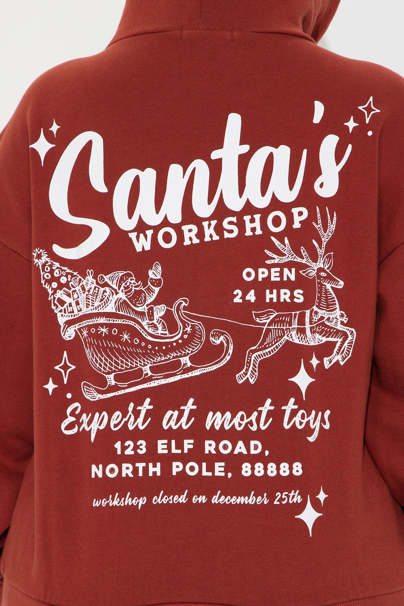 Santa's Workshop Graphic Hoodie - Red