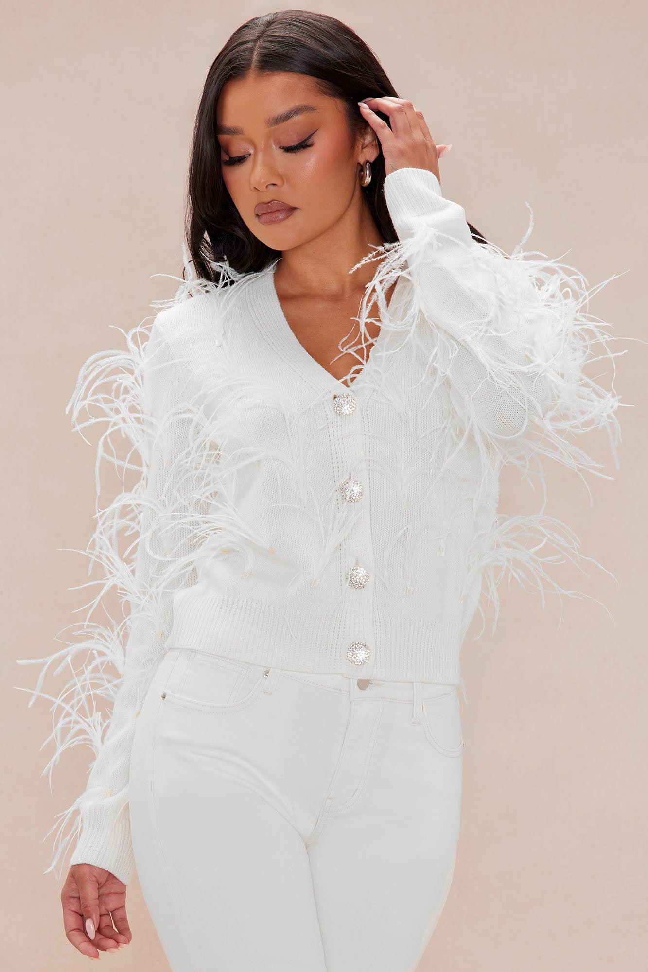 Santana Feather Cardigan - Cream