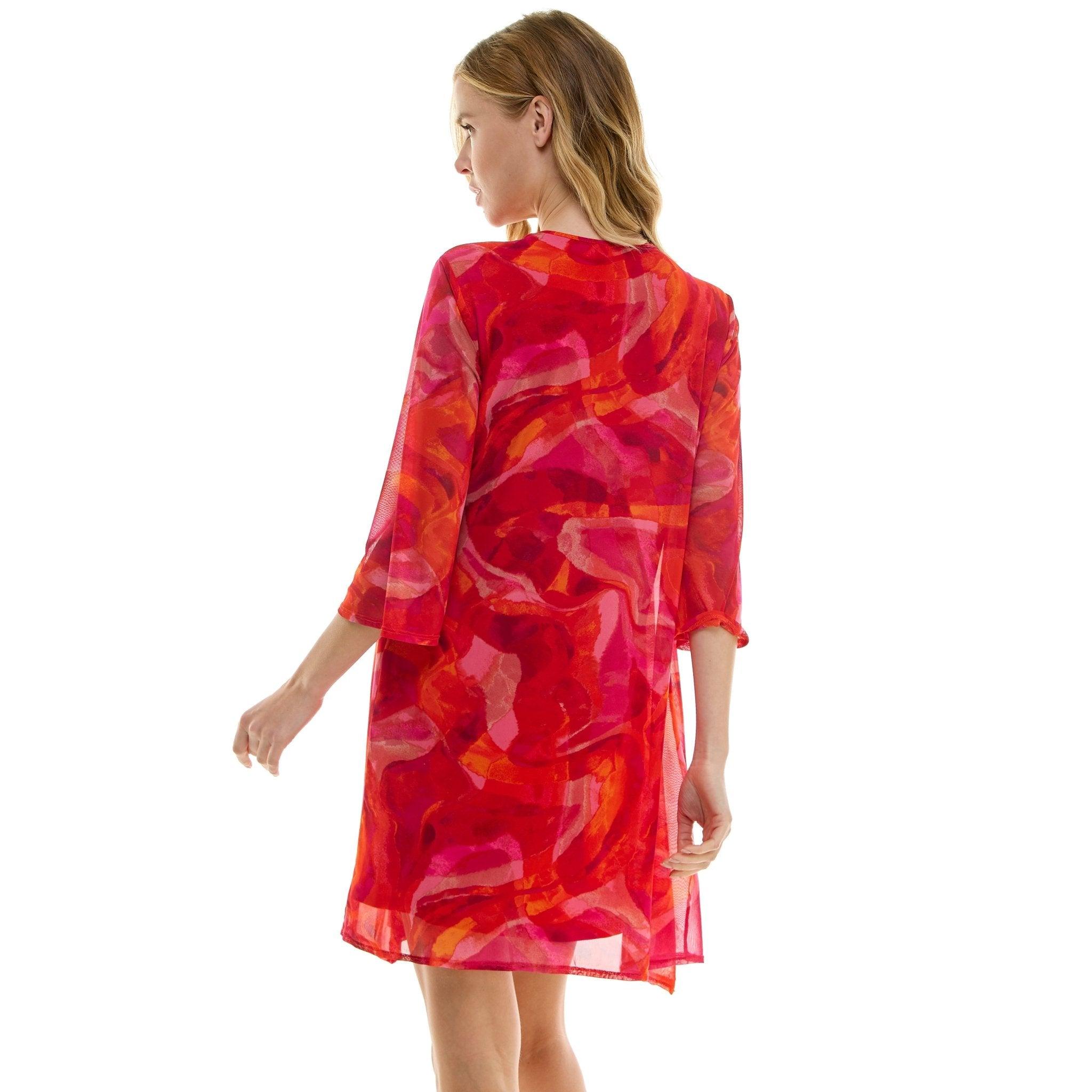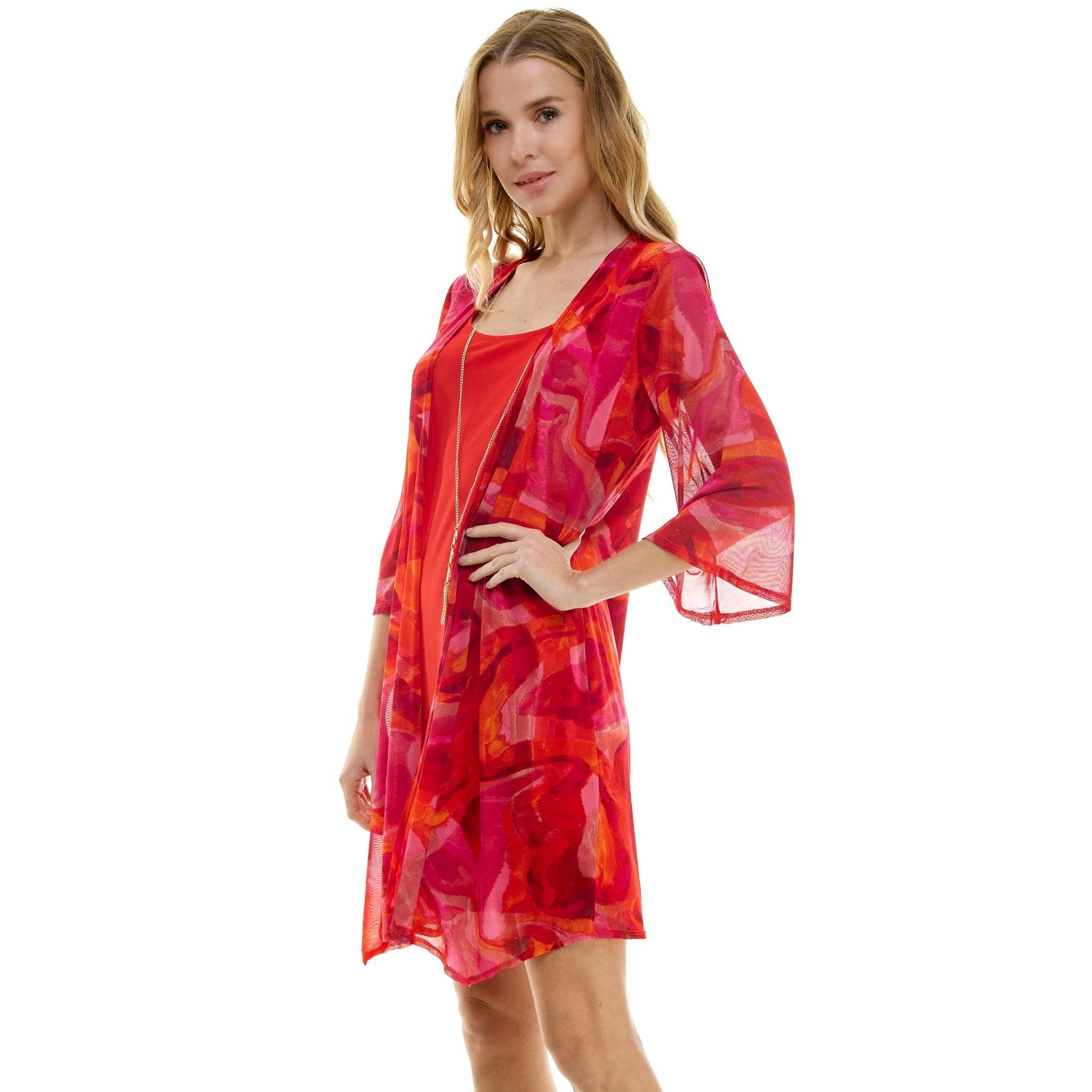 This 3/4 Sleeve 2fer tank dress with necklace is classy with an elevated prints that completes the look for any day. The beautiful kimono and built-in necklace add a touch of elegance to an easy-to-wear fun outfit.