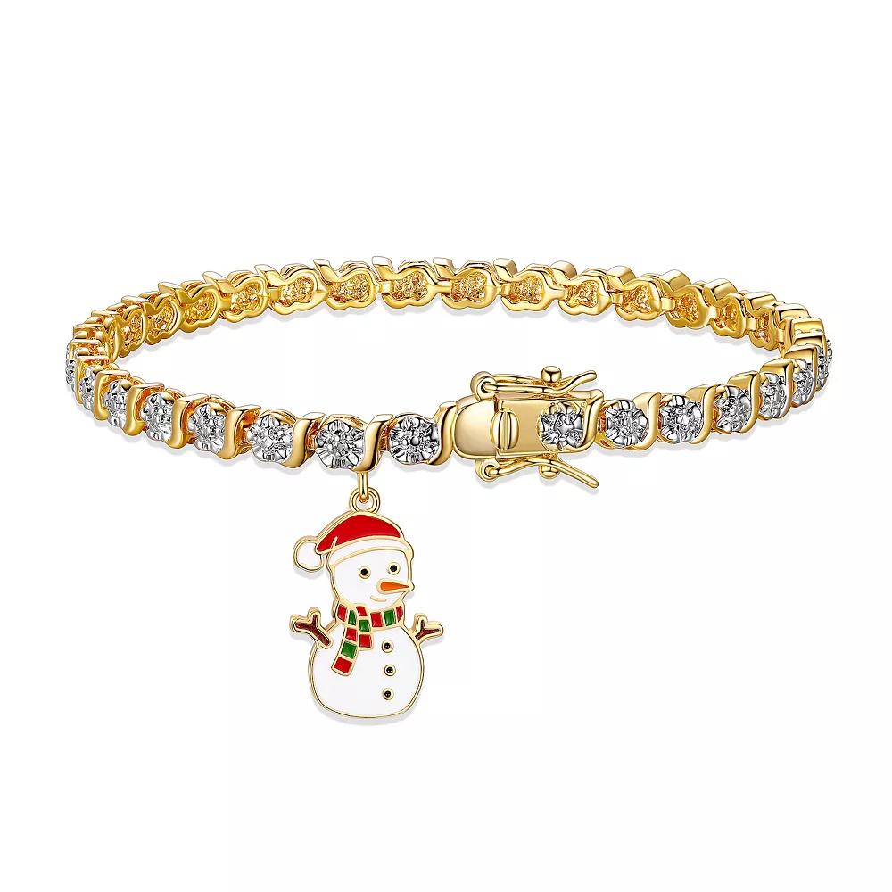 Get into the holiday spirit with this Sarafina diamond accent snowman charm bracelet. Get into the holiday spirit with this Sarafina diamond accent snowman charm bracelet. Length: 7.25 in. Charm size: 26.5 mm x 4.4 mm Nickel free Metal: brass Plating: silver tone, 14k gold flash plated Finish: enameled, polished Packaging: pouchDIAMOND DETAILS Total weight: less than 1/10 ct. Shape: round Setting: pave Gemstones may have been treated to enhance their appearance. Special care may be required. Please visit our Gemstone Treatment & Special Care Guide for more information. Image(s) may be enlarged to show detail. Please note, due to the high value of this item, a signature may be required upon delivery. Size: 7.25". Color: White. Gender: female. Age Group: adult.