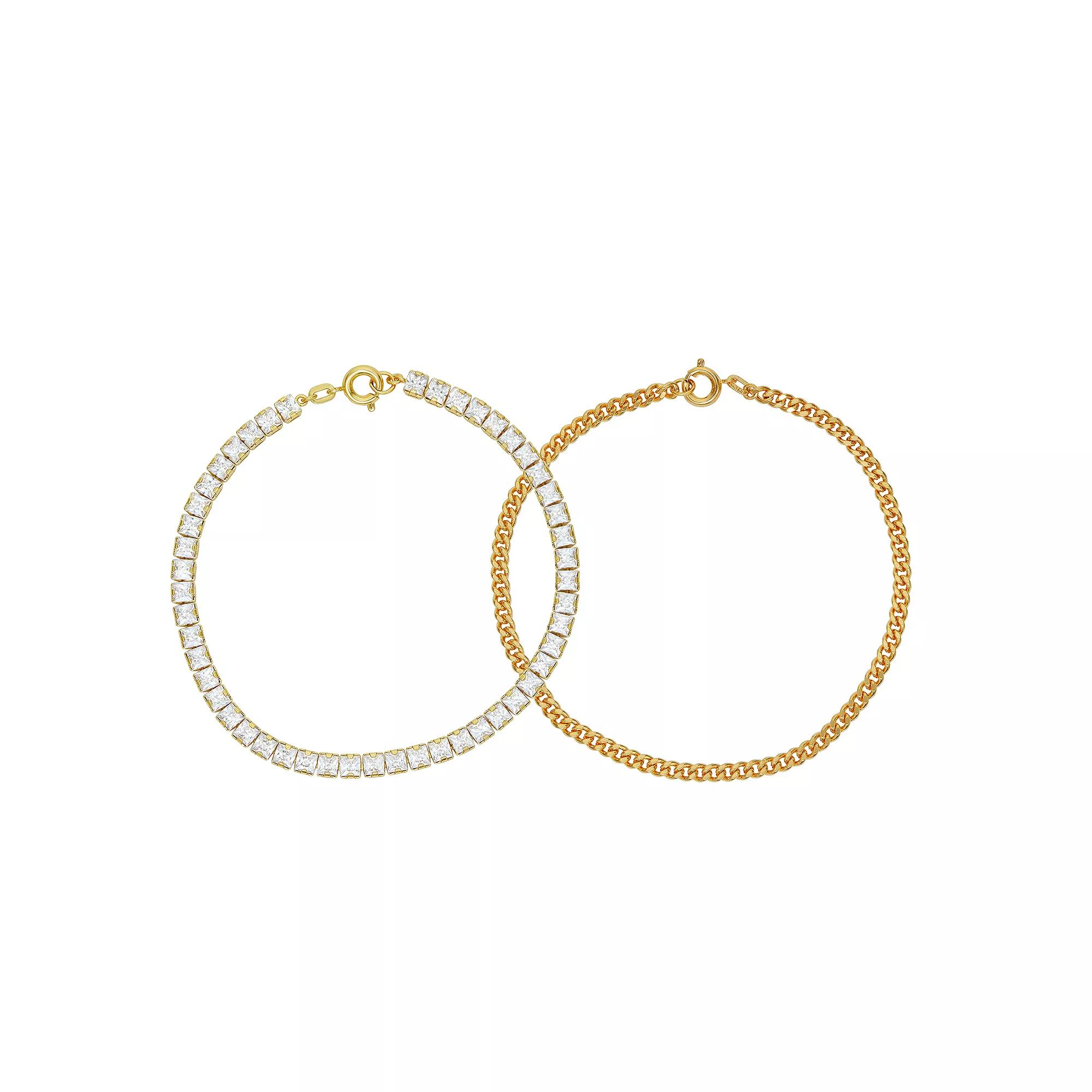 Refresh your accessories collection with this Sarafina bracelet set, featuring a cubic zirconia tennis bracelet and a coordinating chain bracelet. Refresh your accessories collection with this Sarafina bracelet set, featuring a cubic zirconia tennis bracelet and a coordinating chain bracelet. Set includes: 2 bracelets Length: 7.5 in. Metal: bronze Plating: 14k gold, sterling silver Finish: polished Nickel free Packaging: boxed Size: 7.5. Color: White. Gender: female. Age Group: adult. Material: Silver Plate.