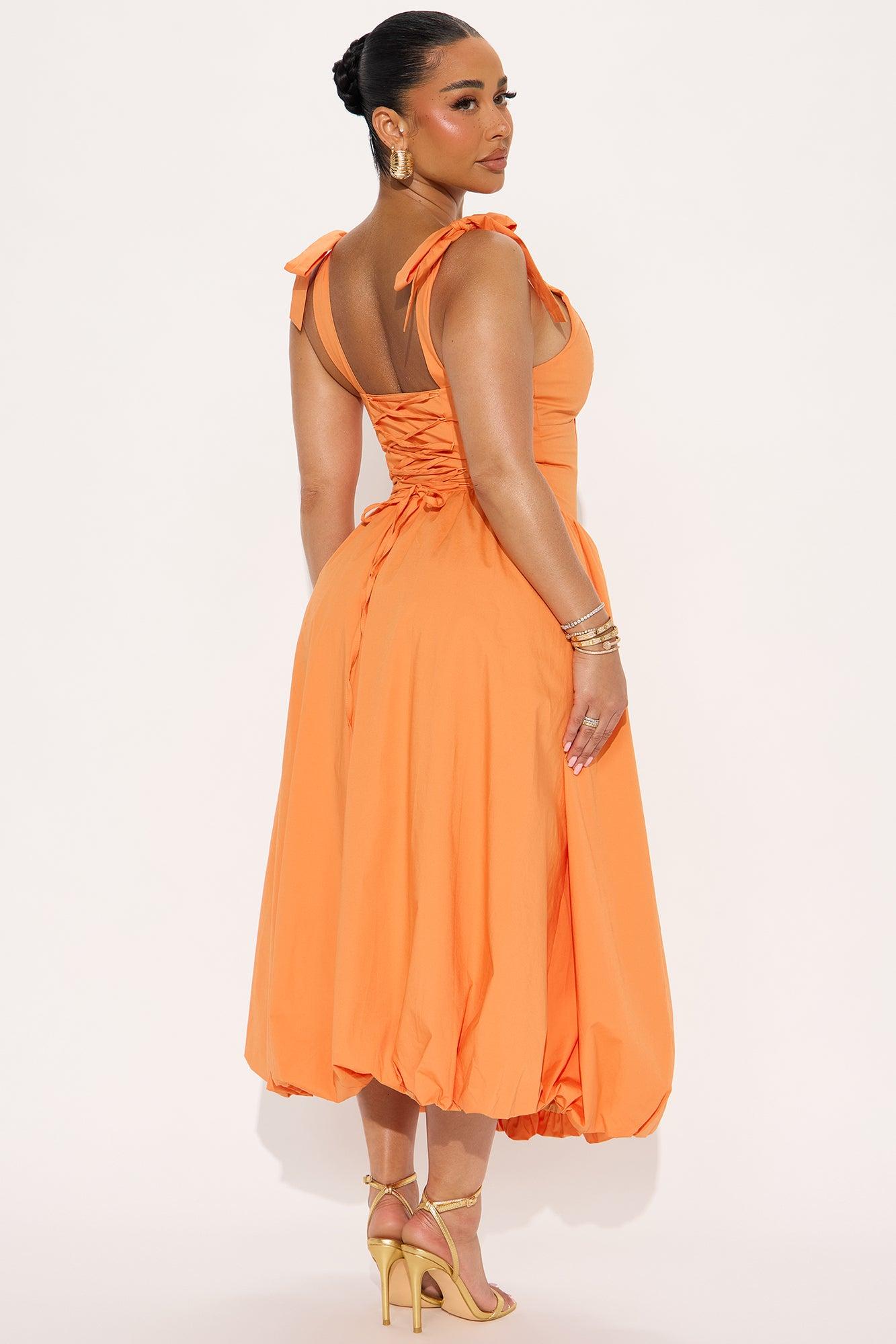 Sarah Poplin Bubble Midi Dress - Orange