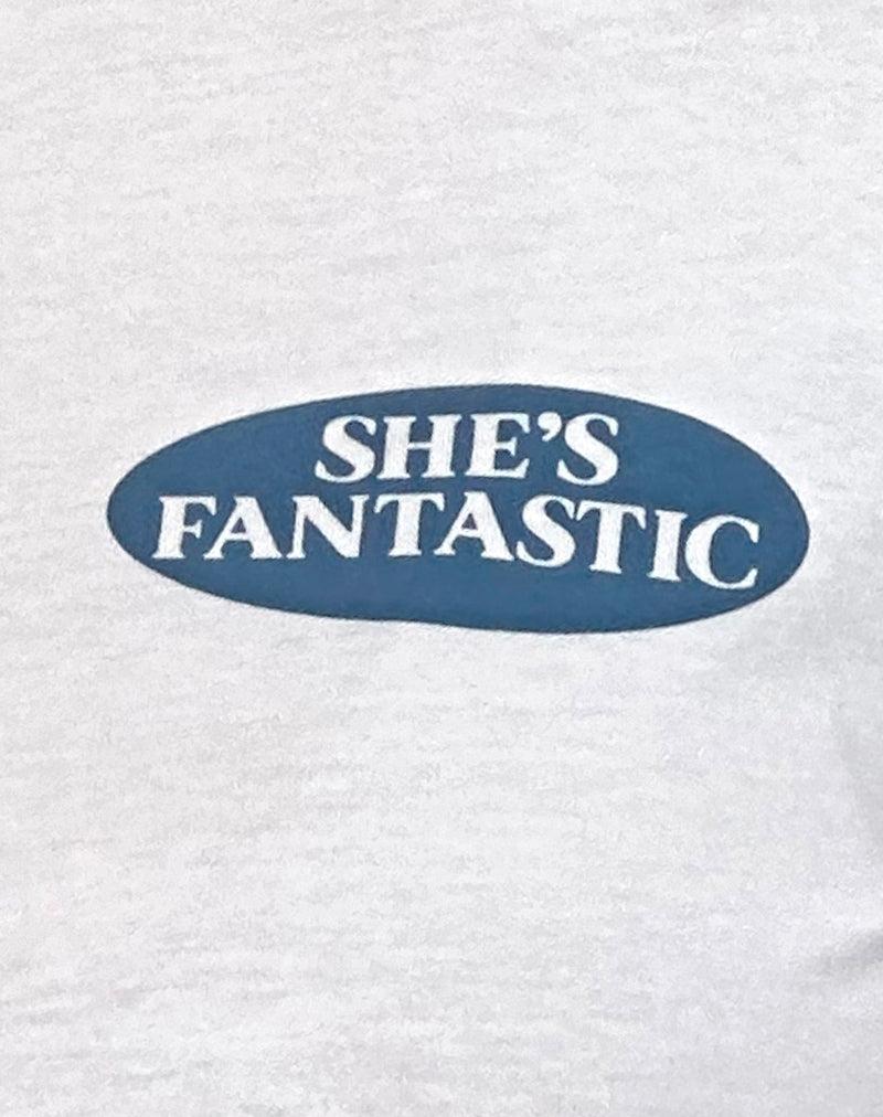 It's time to stock up on your back-to-school basics. Our Sari top displays a long flare sleeve design, crew neckline and raglan details. Finished in a white jersey fabric with contrasting brown neckline and sleeves, complete with a 'she's fantastic' printed design. Pair with our Parallel jeans. MODEL WEARS SIZE: SMALL - MODEL HEIGHT:5'6