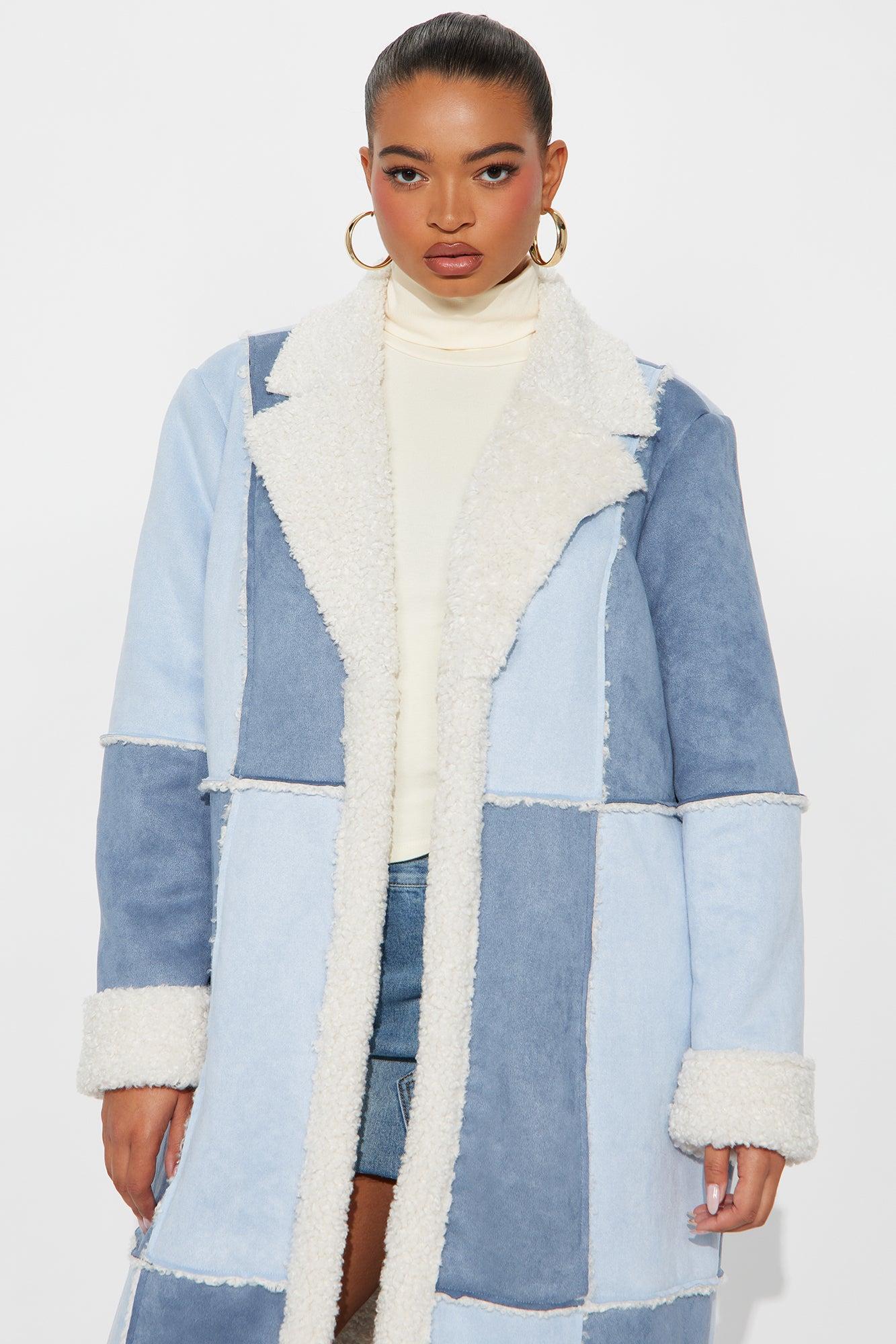 Available In Blue/combo. Faux Suede Coat Collar Neckline Long Sleeves Patchwork Pockets Fully Fur Lined Self: 96% Polyester 4% Spandex Lining: 100% Polyester Imported California Proposition 65WARNING: Cancer and Reproductive Harm - www.P65Warnings.ca.gov.