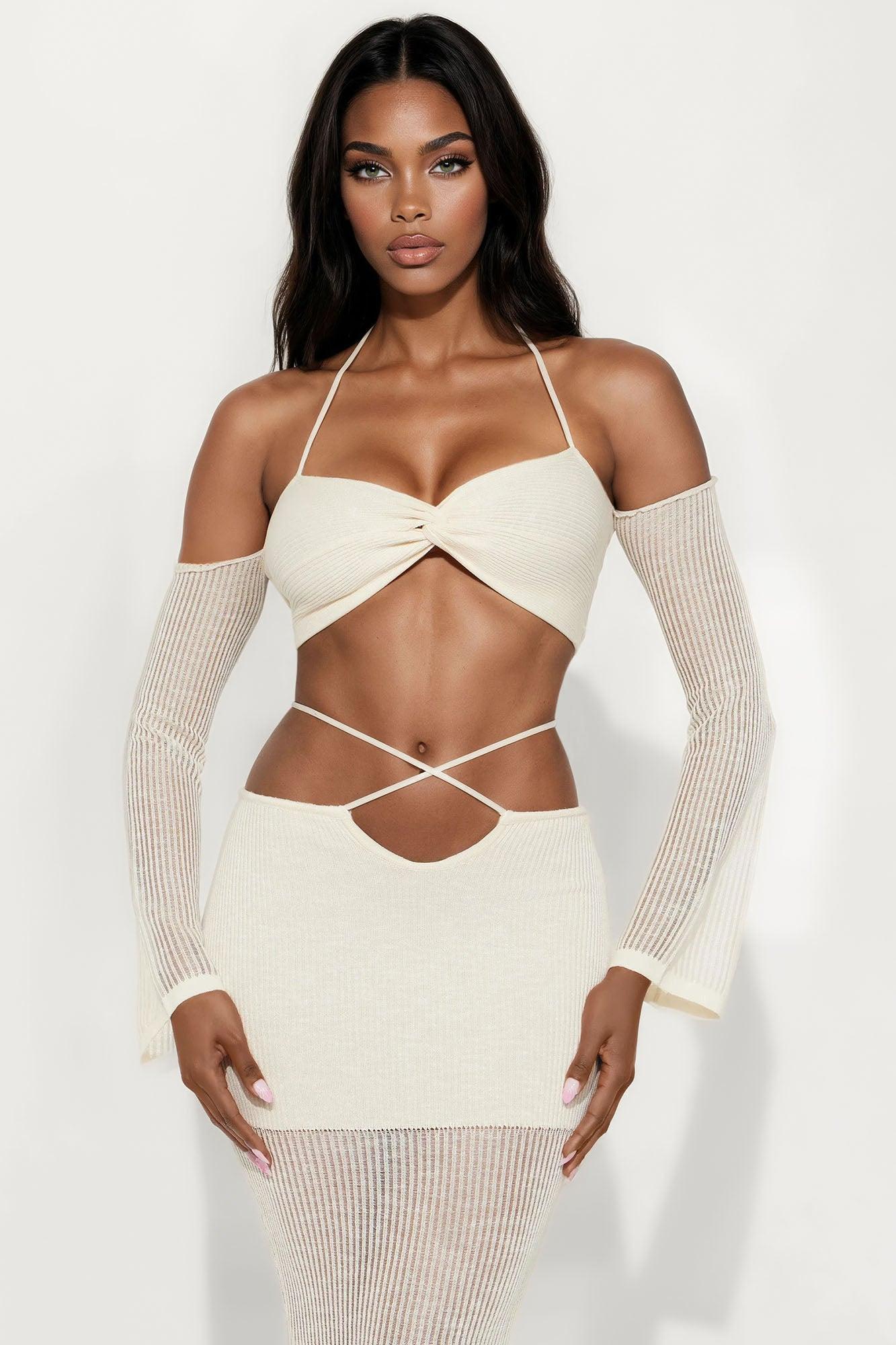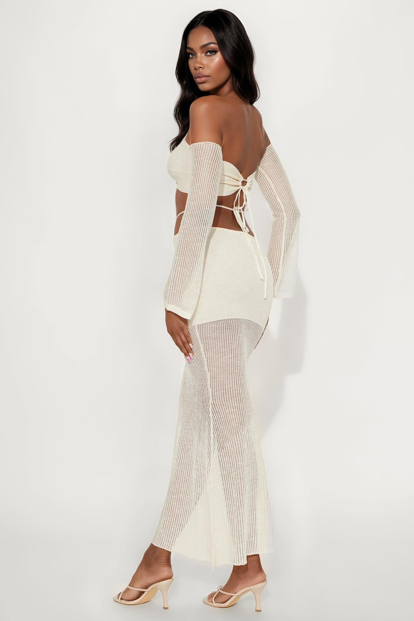 Sasha Ribbed Long Sleeve Maxi Skirt Set - Cream Female