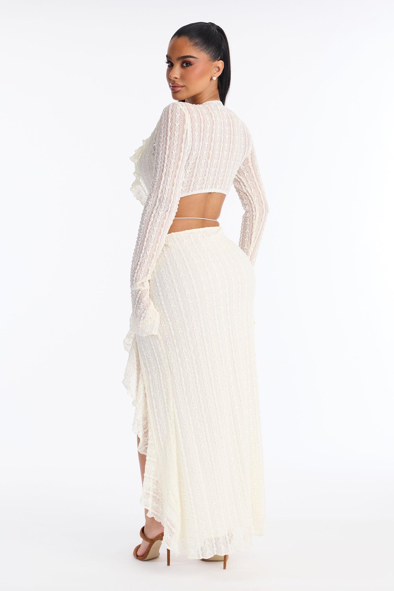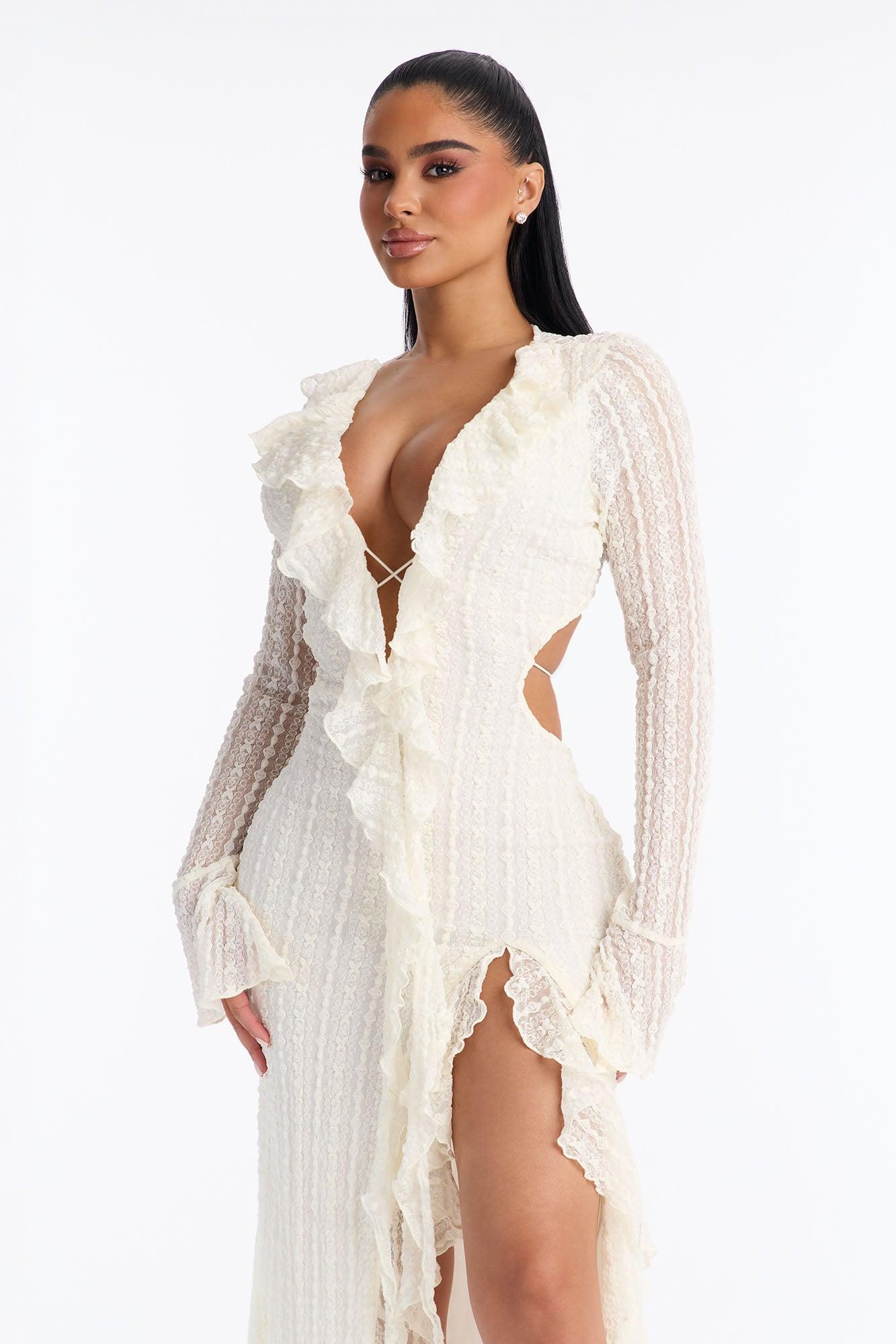 Sashira Ruffle Lace Maxi Dress - Ivory