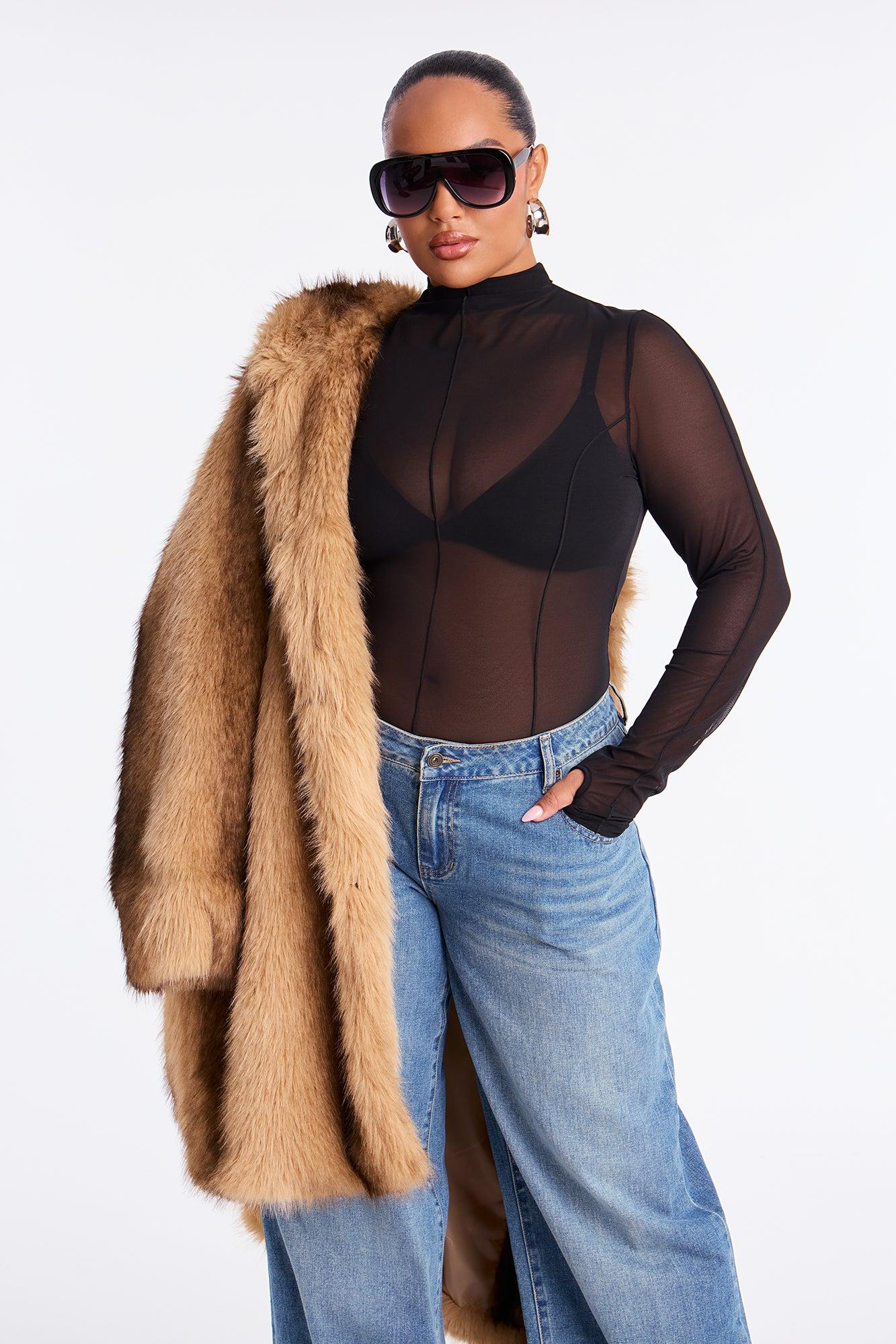 Available In Brown/combo. Faux Fur Coat Collar Neckline Long Sleeves Hook And Eye Closure Fully lined Self Faux Fur: 100% Polyester Lining: 100% Polyester Imported California Proposition 65WARNING: Cancer and Reproductive Harm - www.P65Warnings.ca.gov.