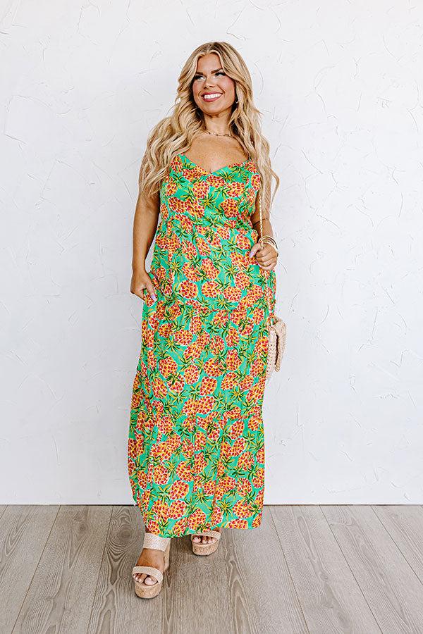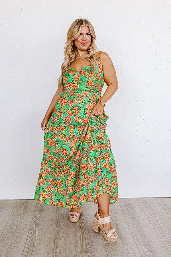You are sure to look sassy yet sweet in this adorable kelly green plus size maxi dress featuring lightweight material patterned with an orange and dark green floral print, a v-cut neckline with thin adjustable spaghettis traps, and a relaxed tiered silhouette that cascades into a straight ankle-length hemline! Measurements 1XL : Bust 40", Hip 46", Length 57", Waist 38". 2XL : Bust 42", Hip 48", Length 57.5", Waist 40". 3XL : Bust 44", Hip 50", Length 58", Waist 42".