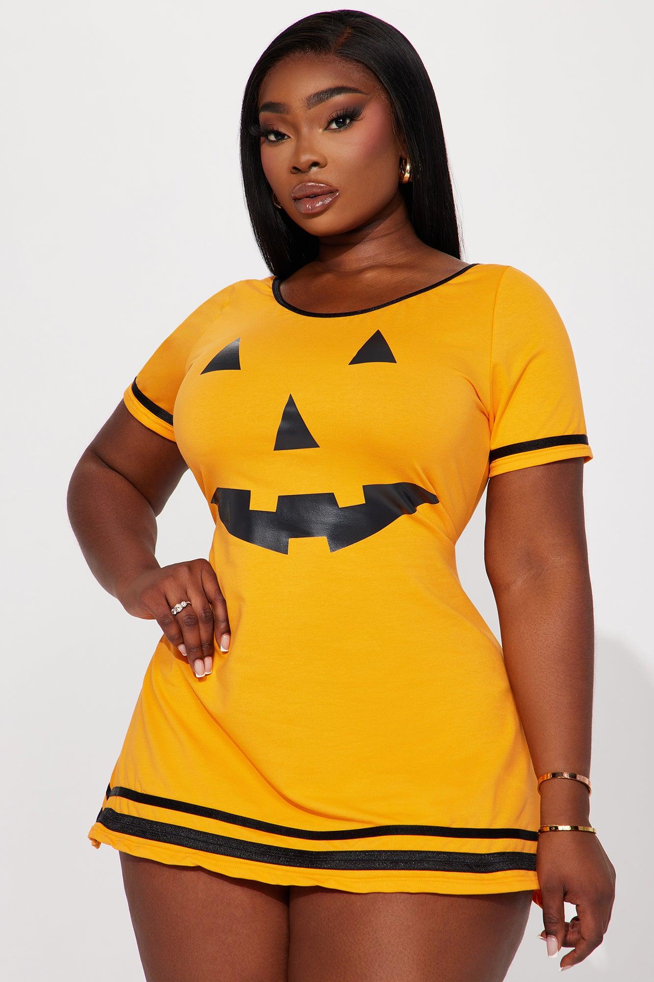 Available In Orange. 1 Piece Ensemble Halloween Costume Pumpkin Costume Pair With Thigh Highs And Heels For The Perfect Look! Jack-O-Lantern Dress Final Sale 100% Polyester Imported California Proposition 65WARNING: Cancer and Reproductive Harm - www.P65Warnings.ca.gov.