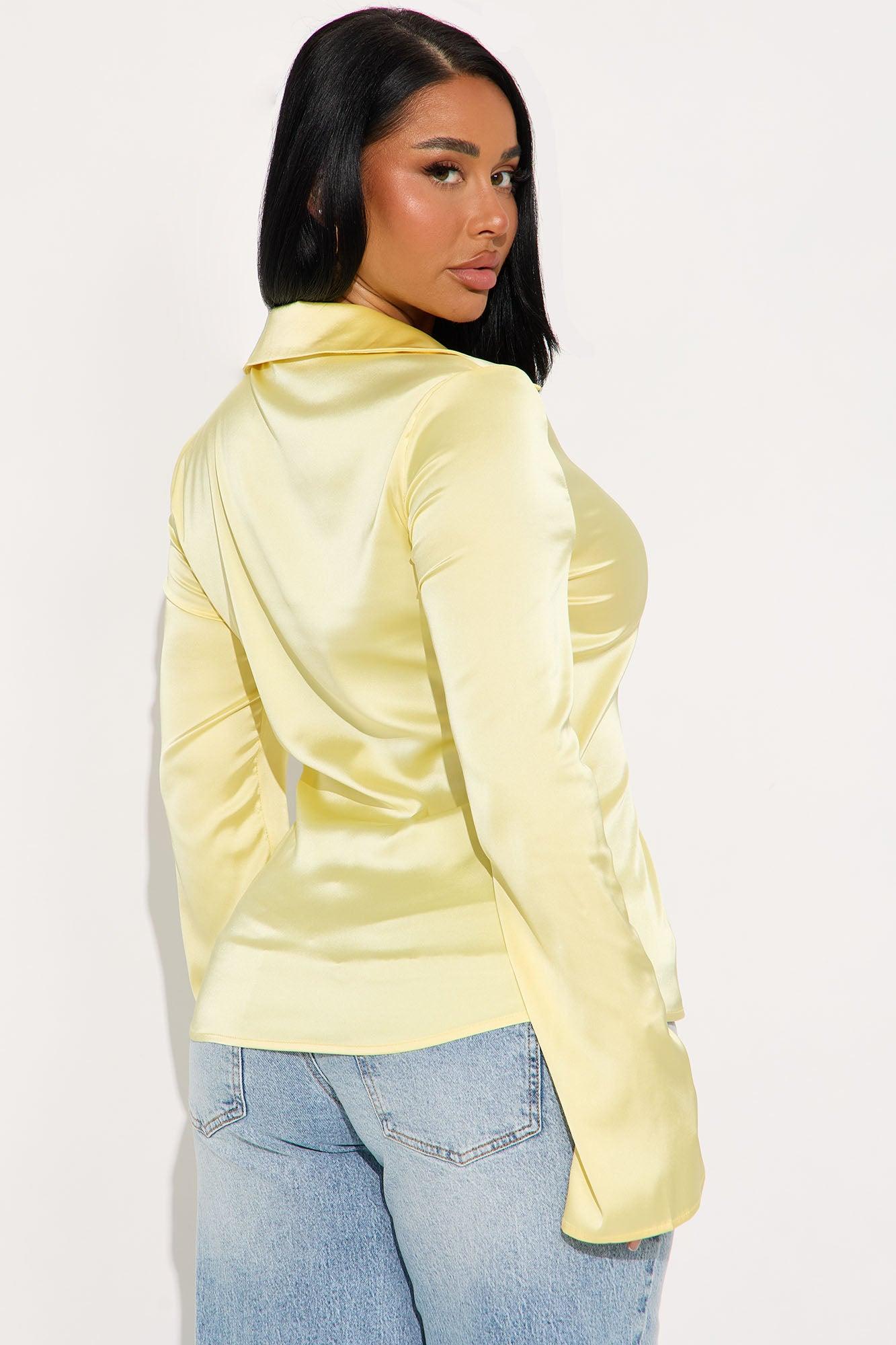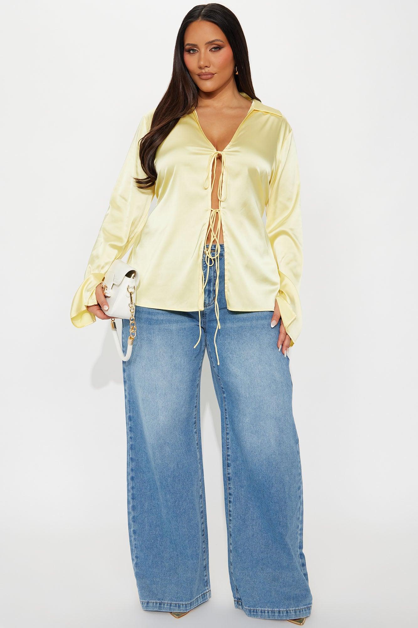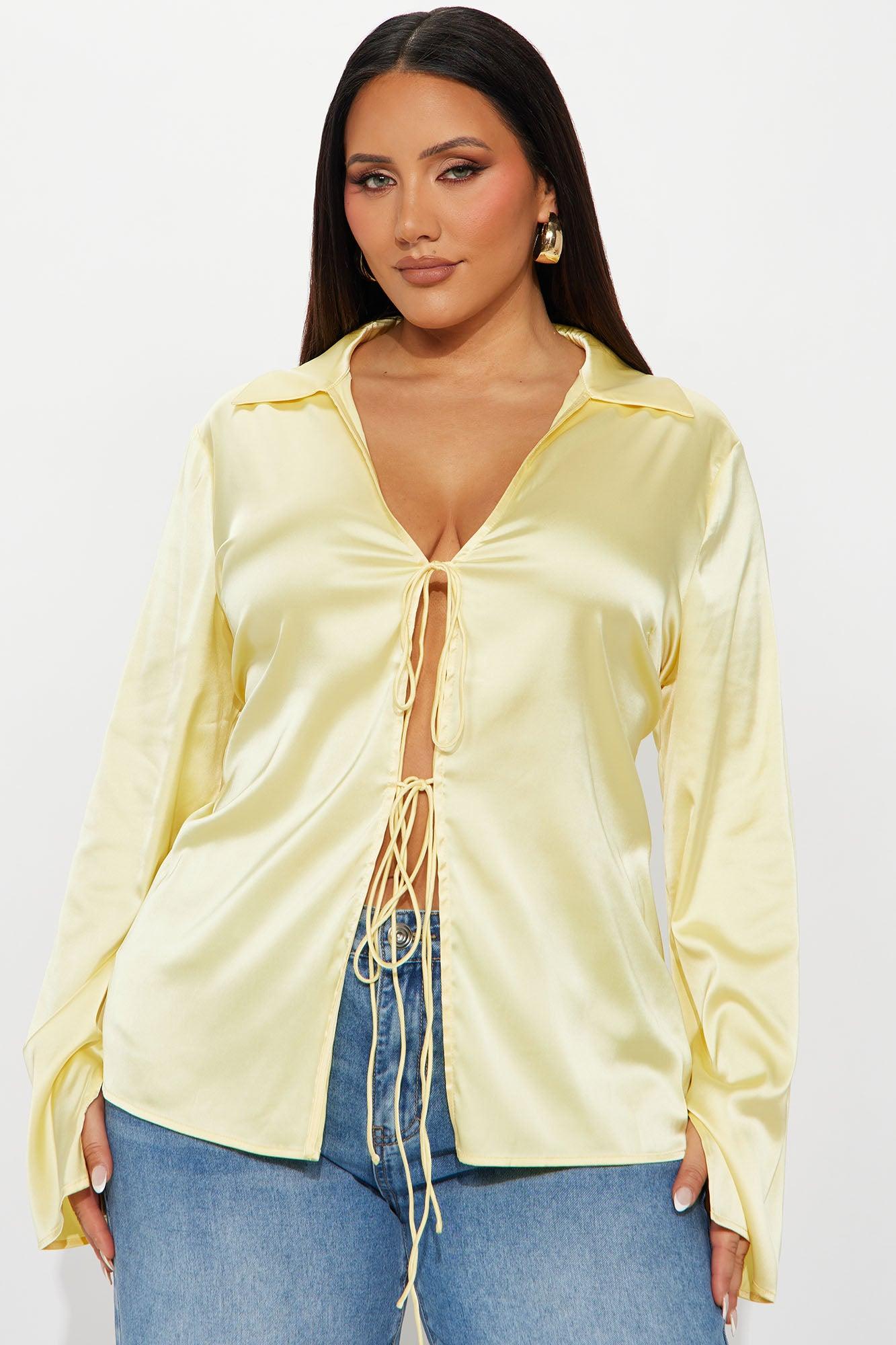Satin Effect Tie Front Flyaway Top - Butter Yellow Female