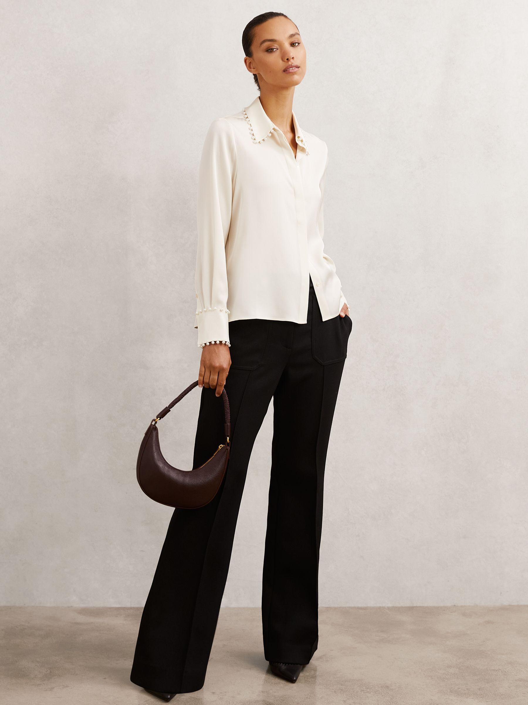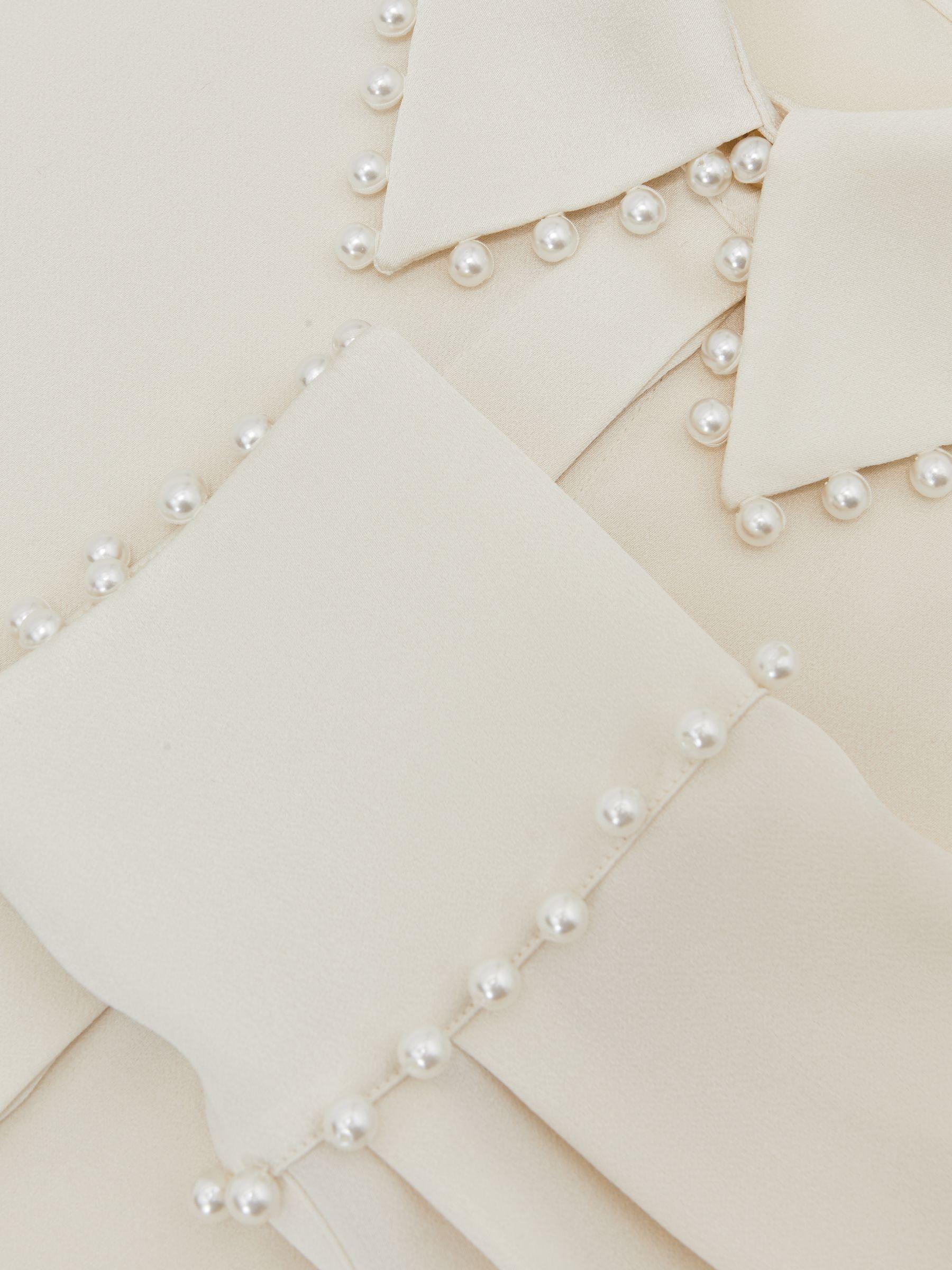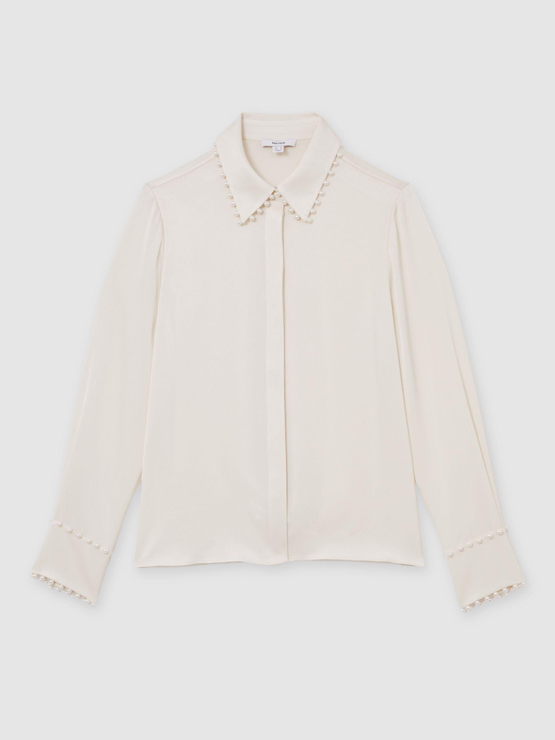 Satin Faux-Pearl Trim Shirt in Ivory