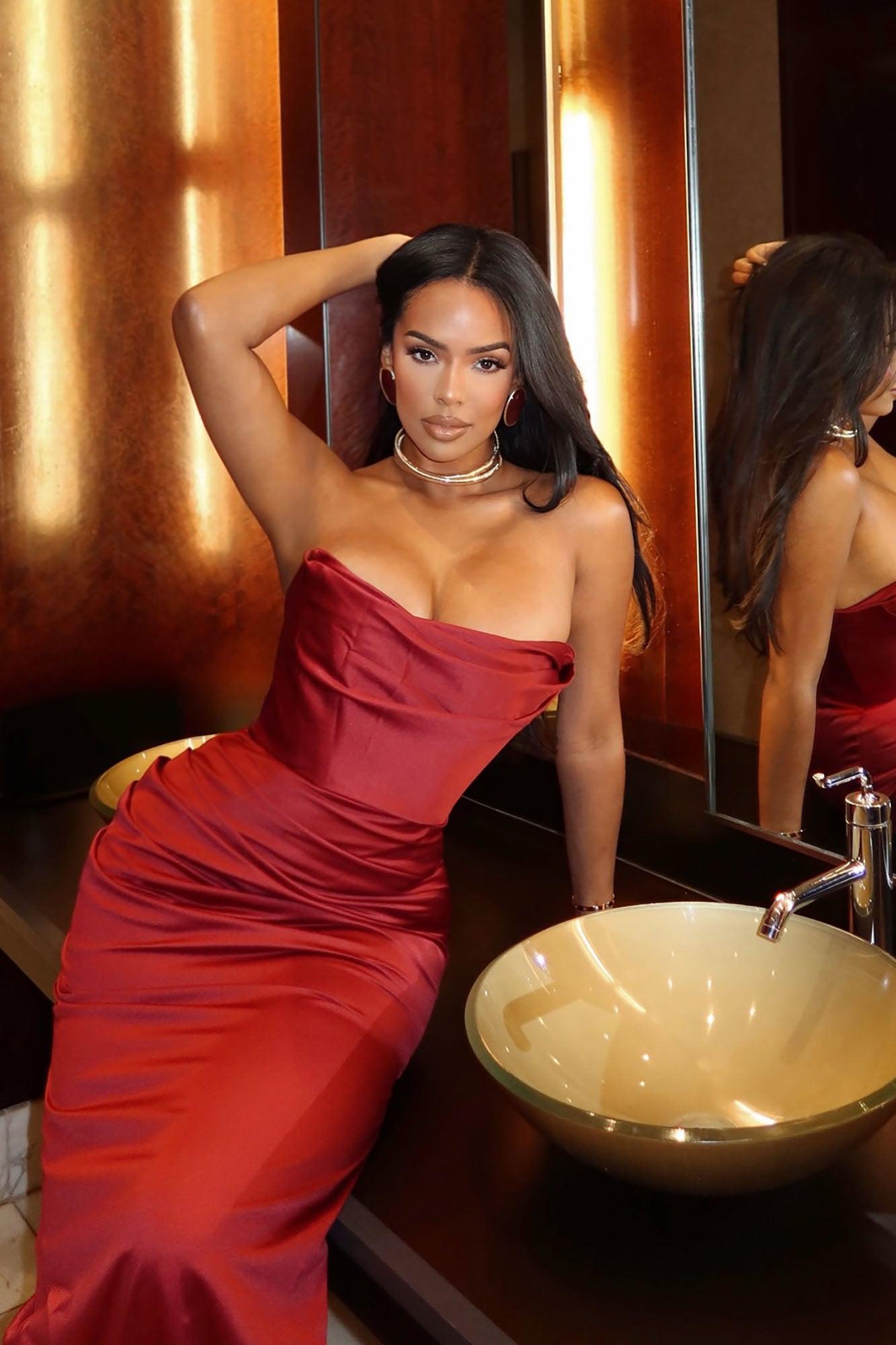Satin Heart Maxi Dress - Wine