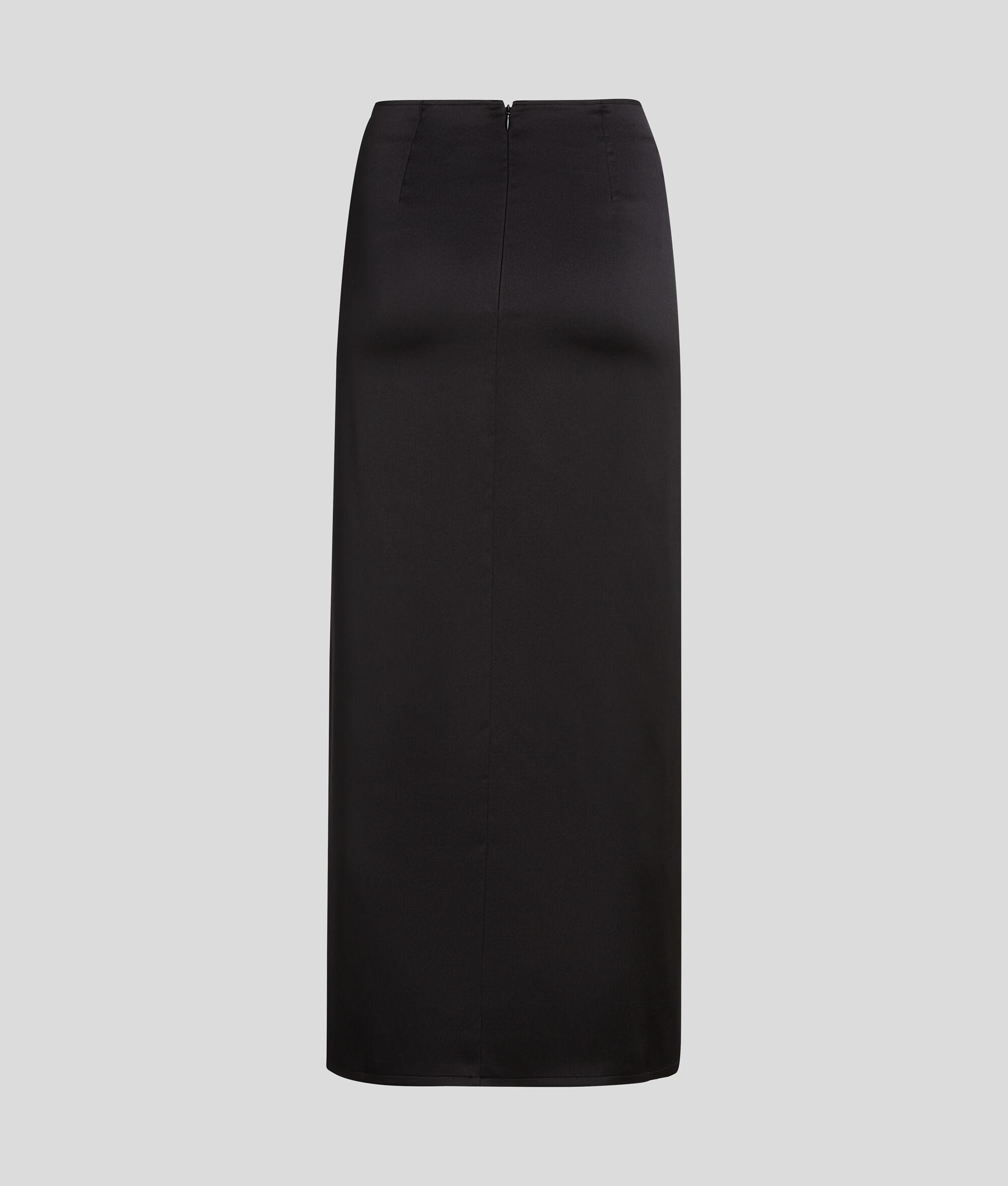 A stunning blend of style and comfort, this maxi skirt features a daring front slit and an adjustable branded drawcord for a personalized touch. The concealed zipper at the back ensures a sleek finish, making it a versatile addition to any wardrobe.