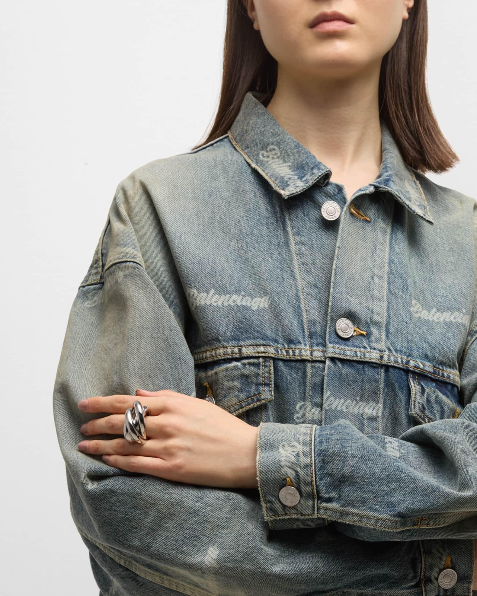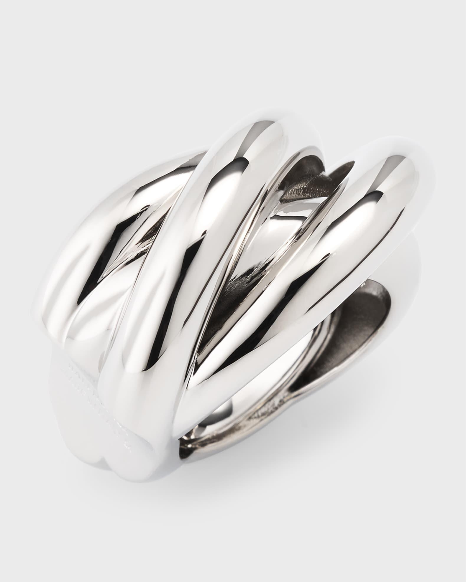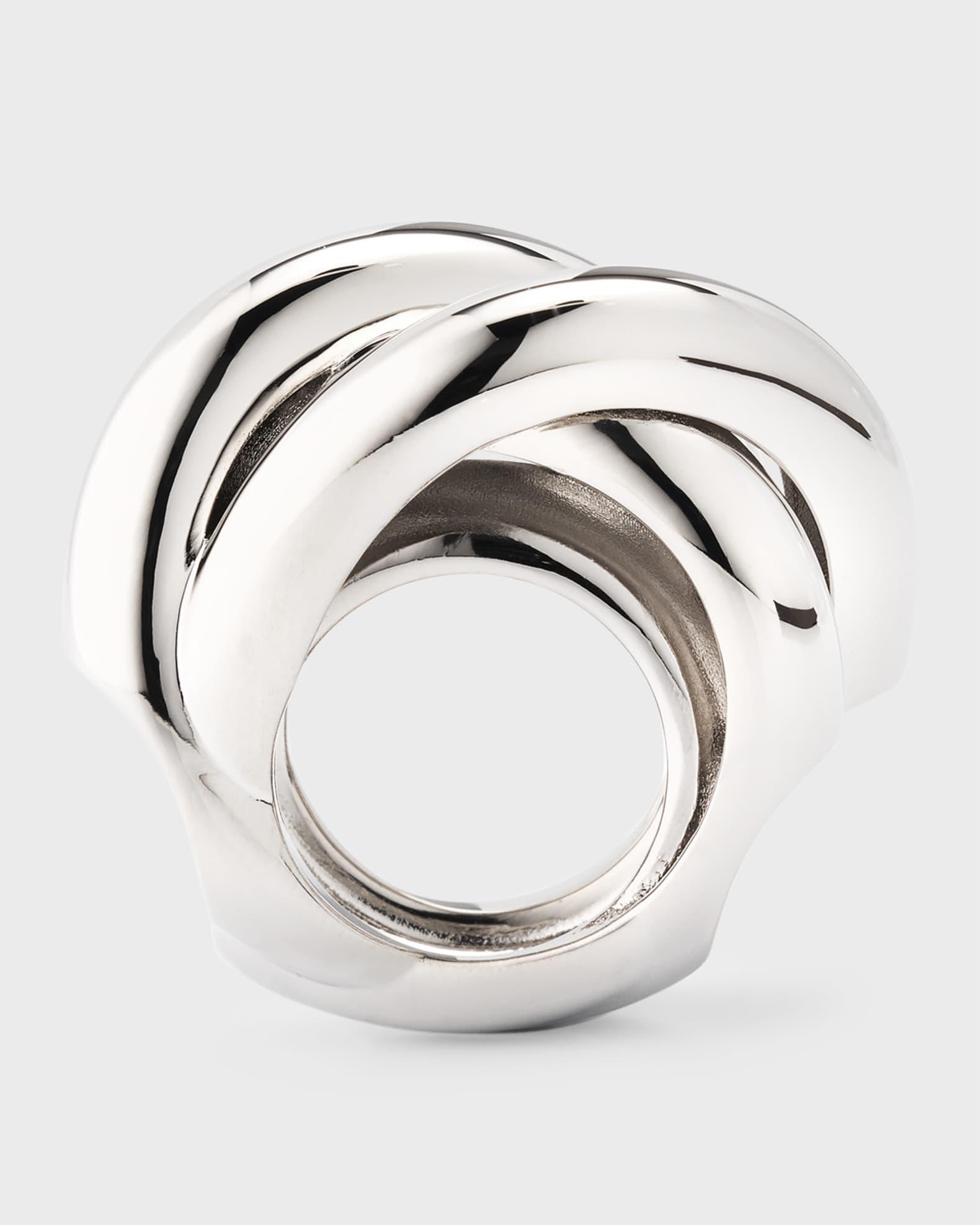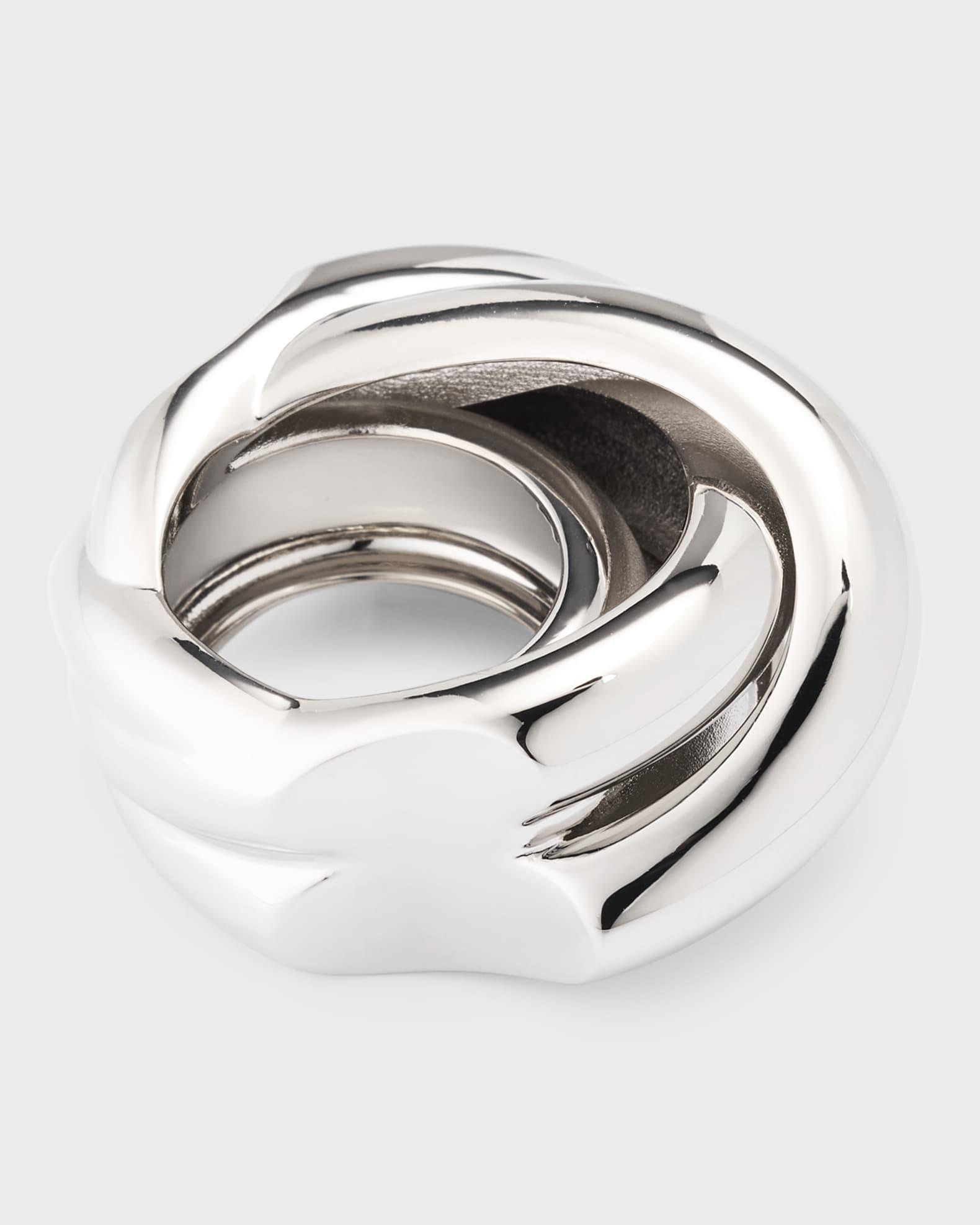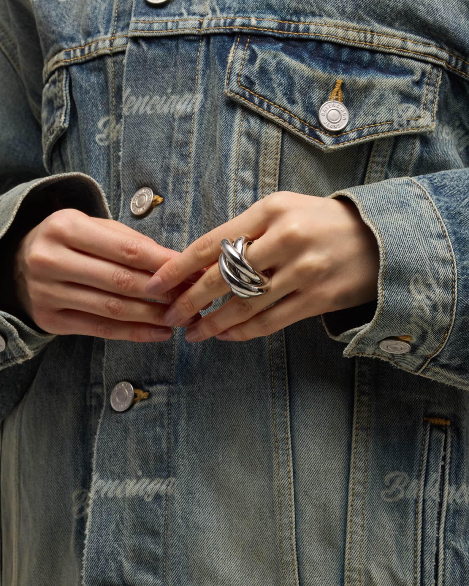 Balenciaga "Saturne" ring in an interlaced effect Oversized proportions Engraved logo Polished silvertone brass Made in Italy