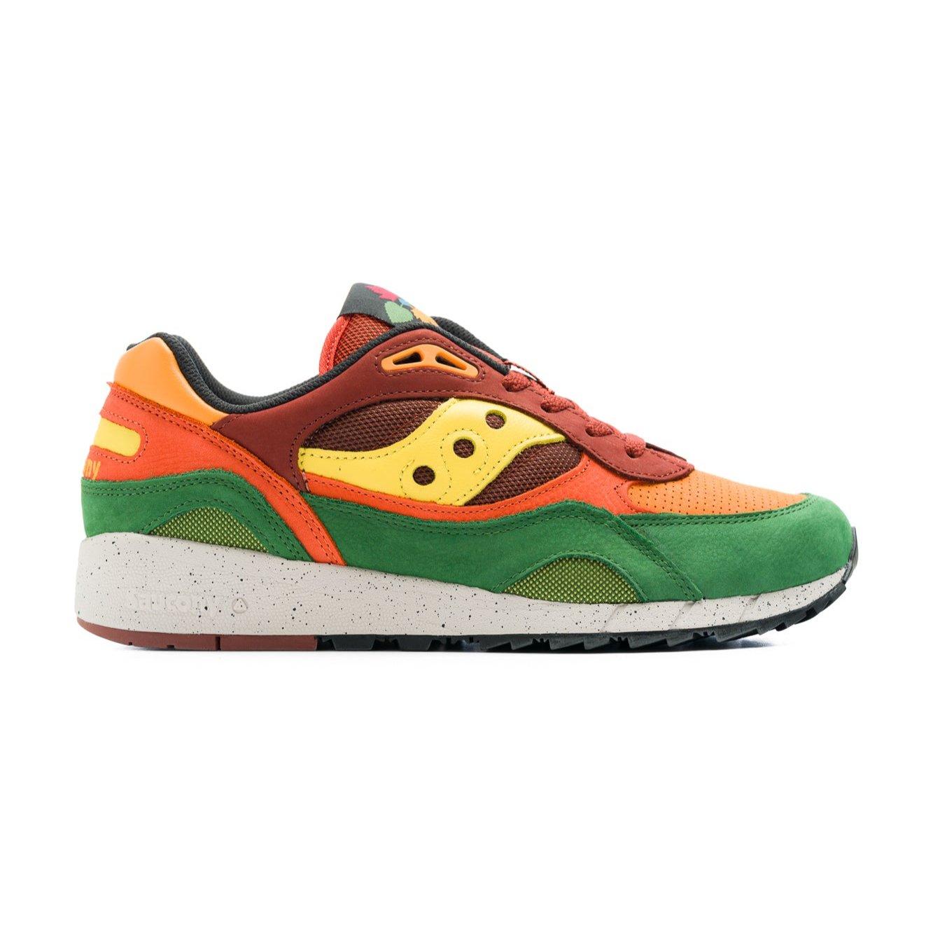 Summoning 1991’s best high-mileage running shoes, these classics support and flex perfectly with the killer cushioning you know and expect from Saucony. Shock absorbing EVA midsole to bring the comfort of the shoes to a next level. XT-600 triangular lugrubber gives the shoes a higher grip. EMBRACE NATURE'S COLORS. Step into the beauty of fall with Saucony's Fall Foliage Pack. Inspired by autumn's colors, it features Shadow 6000 and Shadow 5000 shoes. Enjoy the premium feel of Smooth Nubuck and Tumbled Leather overlays. Embrace sustainability with recycled linings, footbed, and tongue. Elevate your style with nature's hues in every step. Features: Smooth Nubuck and Tumbled Leather overlays. Contrast Cosmo recycled linings. Recycled brushed nylex footbed and nylon tongue.