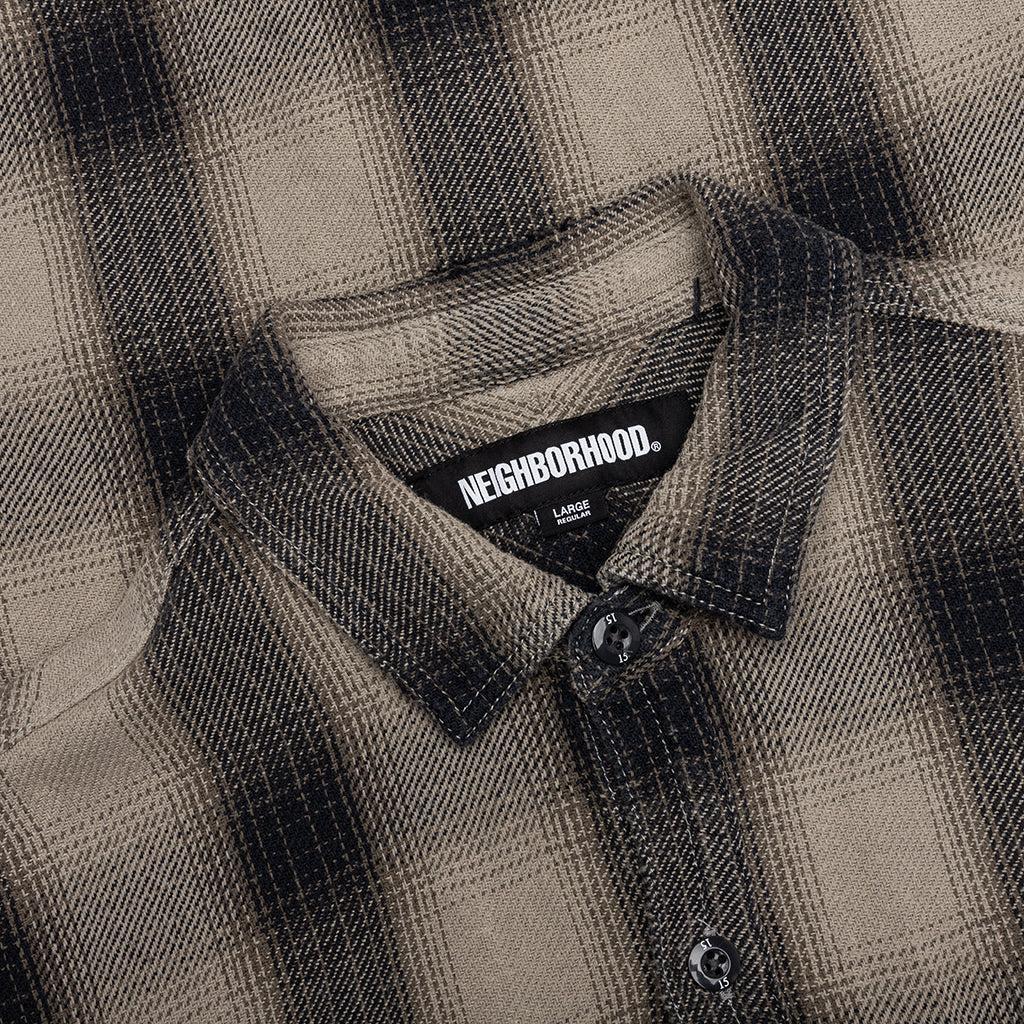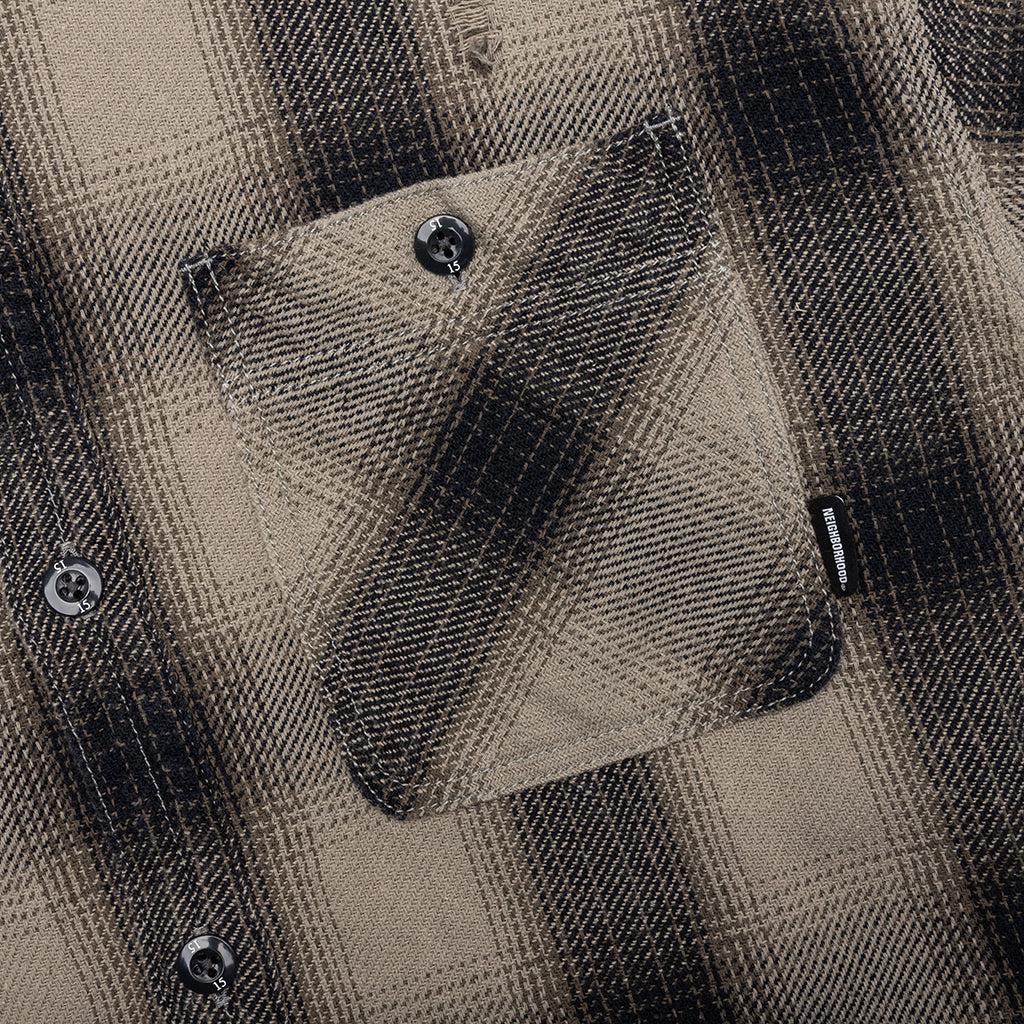 The Savage Block Hombre Check Shirt L/S in Greige is crafted from cotton with an original yarn-dyed block check pattern. Designed in a relaxed fit, it features button-closure chest patch pockets, a button front, and buttoned cuffs for versatile styling. A woven hem label adds a finishing touch to this classic yet contemporary piece. 100% Cotton Original yarn-dyed block check pattern Relaxed fit Button closure chest patch pockets Button closure Button cuff Woven hem label Style No: 242AQNH-SHM07-GG