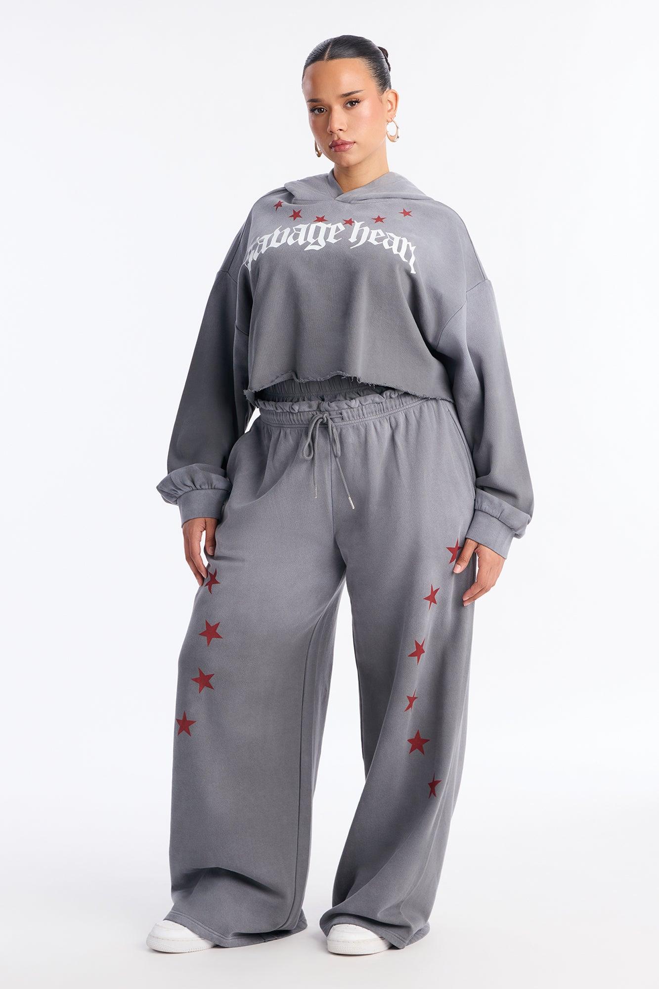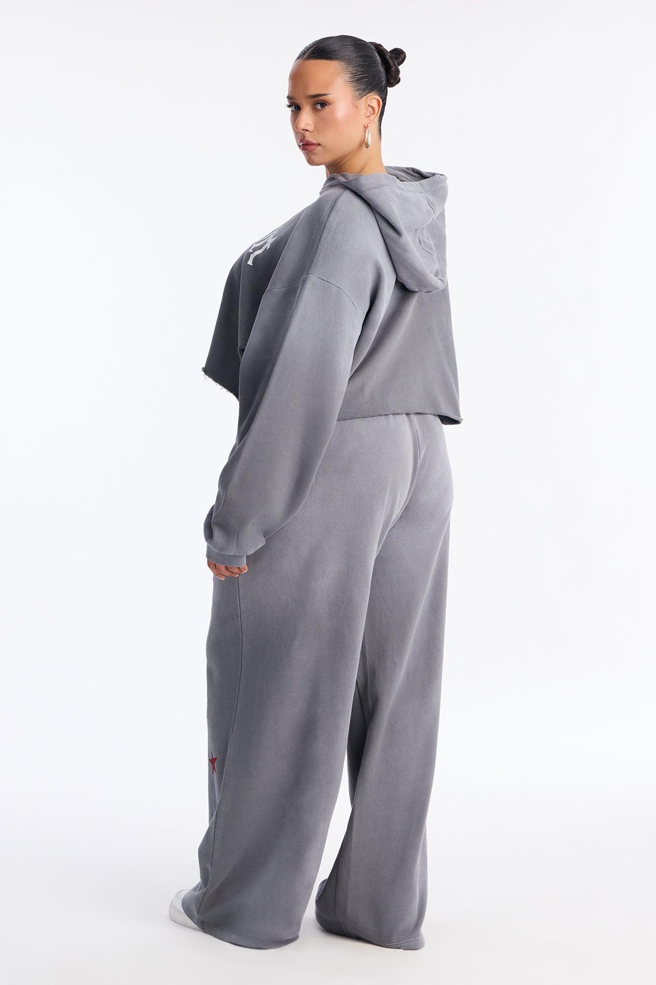 Available In Black Wash. 2 Piece Ensemble Sweatshirt Hoodie And Pant Set Stretch Long Sleeve Washed Boxer Detail Elastic Waistband Wide Leg 30.5" Inseam Disclaimer: Due To The Specialized Wash, Each Garment Is Unique. Top: 100% Cotton Bottom: 100% Cotton Imported