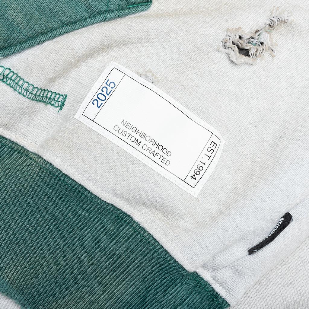 Neighborhood introduces the Savage Sweat L/S Hoodie into its collection of apparel. It is composed of cotton and made from a faded medium-weight fleece material. Realistic aging is expressed using a combination of processes such as fading, bleaching, and damage. The hoodie is highlighted by the hand-painted graphic on the chest. Ribbed trims and a comfortable crew neckline complete the look. 100% Cotton jersey Hooded neckline Kangaroo pocket Hand-painted graphics Ribbed trims Long sleeves Distressed Style No: 251OKNH-CSM02-GRN 251OKNH CSM02 GREE