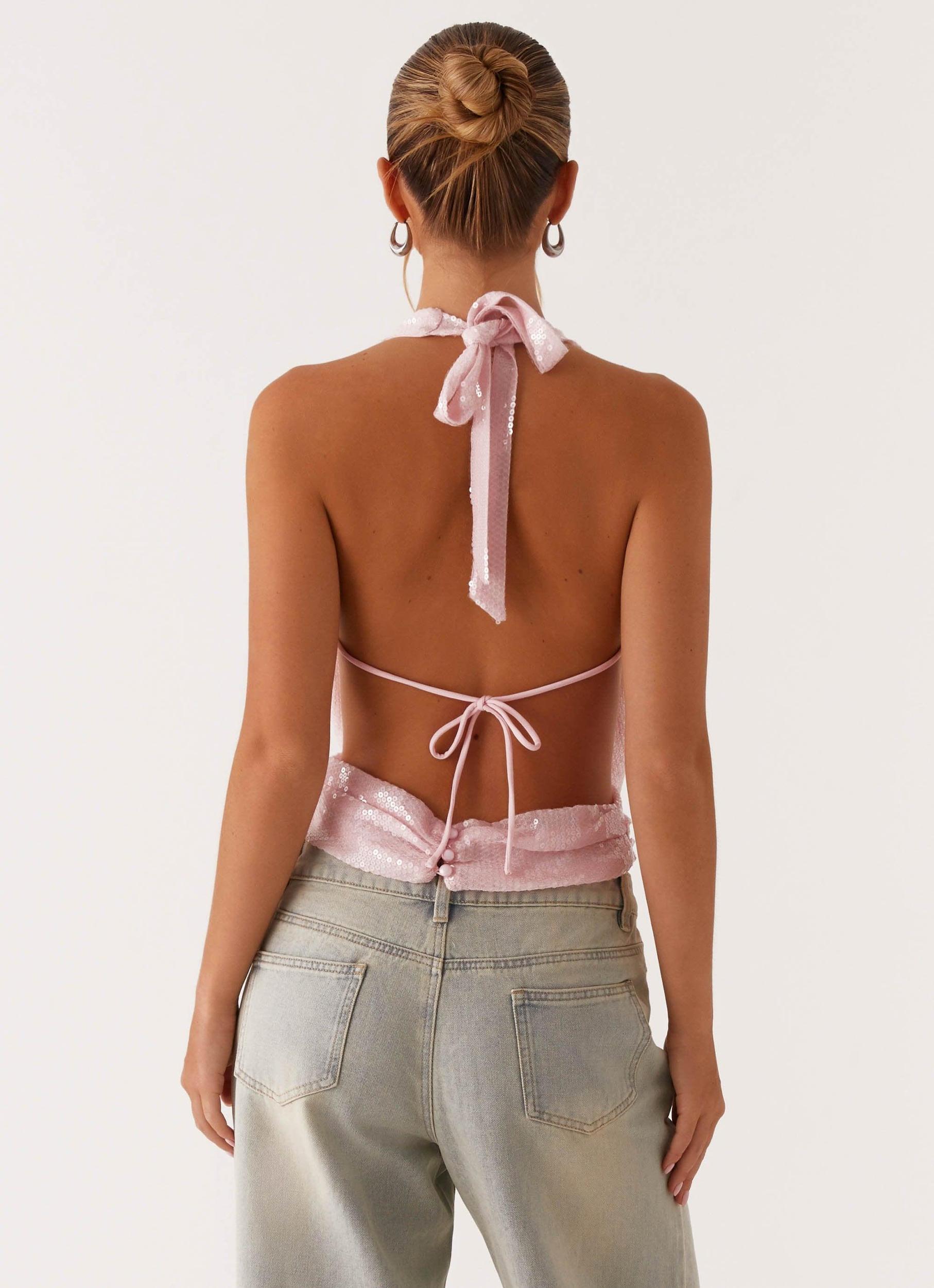 Peppermayo Exclusive The Sawyer Sequin Top is the ultimate piece to shine after dark. With its sultry low cowl neckline and shimmering sequin fabric, it’s made for the golden hour and beyond. A back tie detail adds that extra touch of nightlife allure. - Low front cowl neckline- Back neck tie- Sequins material- Back tie- Open back- Back buttons- Ruched sides- 100% polyester, Lining: 95% polyester, 5% spandex Size AU 8 / US 4 garment measurements: Length: 53 cm / 20.9 in.Waist: 69 cm / 27.2 in. Yasmin is 174cm and wearing a size AU 8 / and US 4