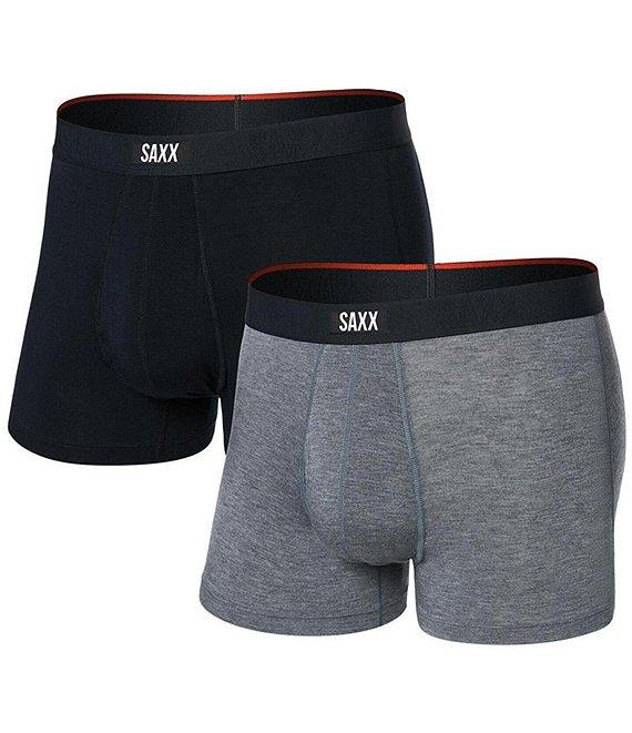 From SAXX, this 2-pack of trunks features: (2) solid trunks Ball Park Pouch Flat Out Seams Three-D Fit No-Ride Up Leg Stop Drop Technology Eco Vero Materials Lightweight 4-way stretch Naturally breathable Naturally odor-resistant No-roll waistband Easy care 3" inseam Viscose/elastane Machine wash/tumble dry Imported.
