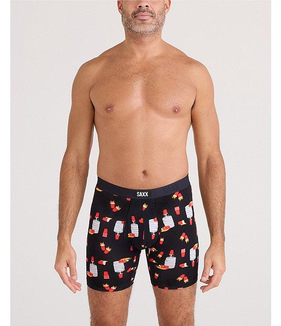 From SAXX, these boxer briefs feature: No-roll waistband Pull-on construction No fly BallPark Pouch® Stop Drop Technology™ Flat Out Seams® Three-D Fit® No-RideUp Leg™ Approx. 6" inseam Moisture-wicking, odor-resistant, naturally-breathable quick-dry, lightweight four-way stretch fabric Super-soft EcoVero™ viscose/elastane Machine wash/tumble dry Imported.