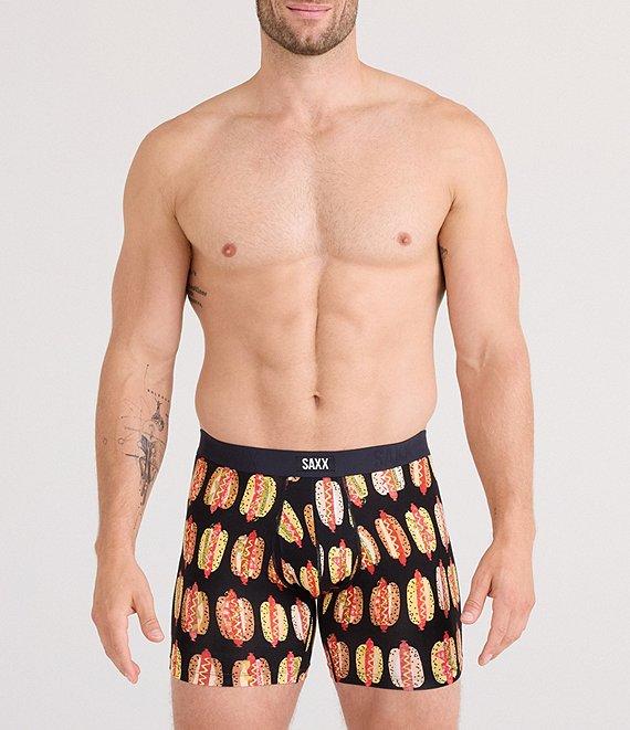 From SAXX, these boxer briefs feature: BallPark Pouch®-secures everything in place Stop Drop Technology™ Flat Out Seams®-eliminate chafed skin Three-D Fit® 9-panel construction No-RideUp Leg™-prevent distracting leg ride up Super-soft EcoVero™ fabric Four-way stretch for unrestricted movement No-roll waistband Stop Drop Technology™ Wicking fabric in pouch lining Moisture-wicking, quick-drying, odor-resistant, lightweight, naturally breathable fabric Self of viscose/elastane super-soft EcoVero™ fabric ; pouch lining of Tencel™ lyocell/polyester/spandex Machine wash/tumble dry Imported.