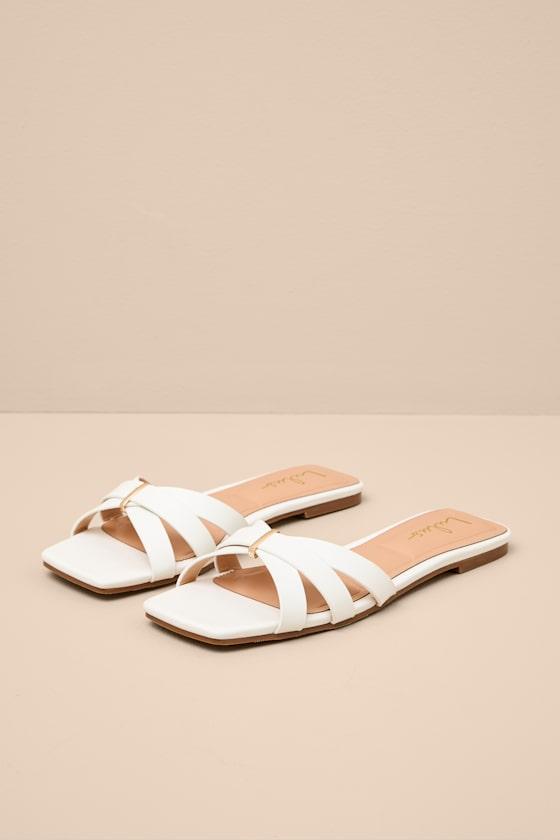 Starting The Day White Cut-Out Flat Slide Sandals