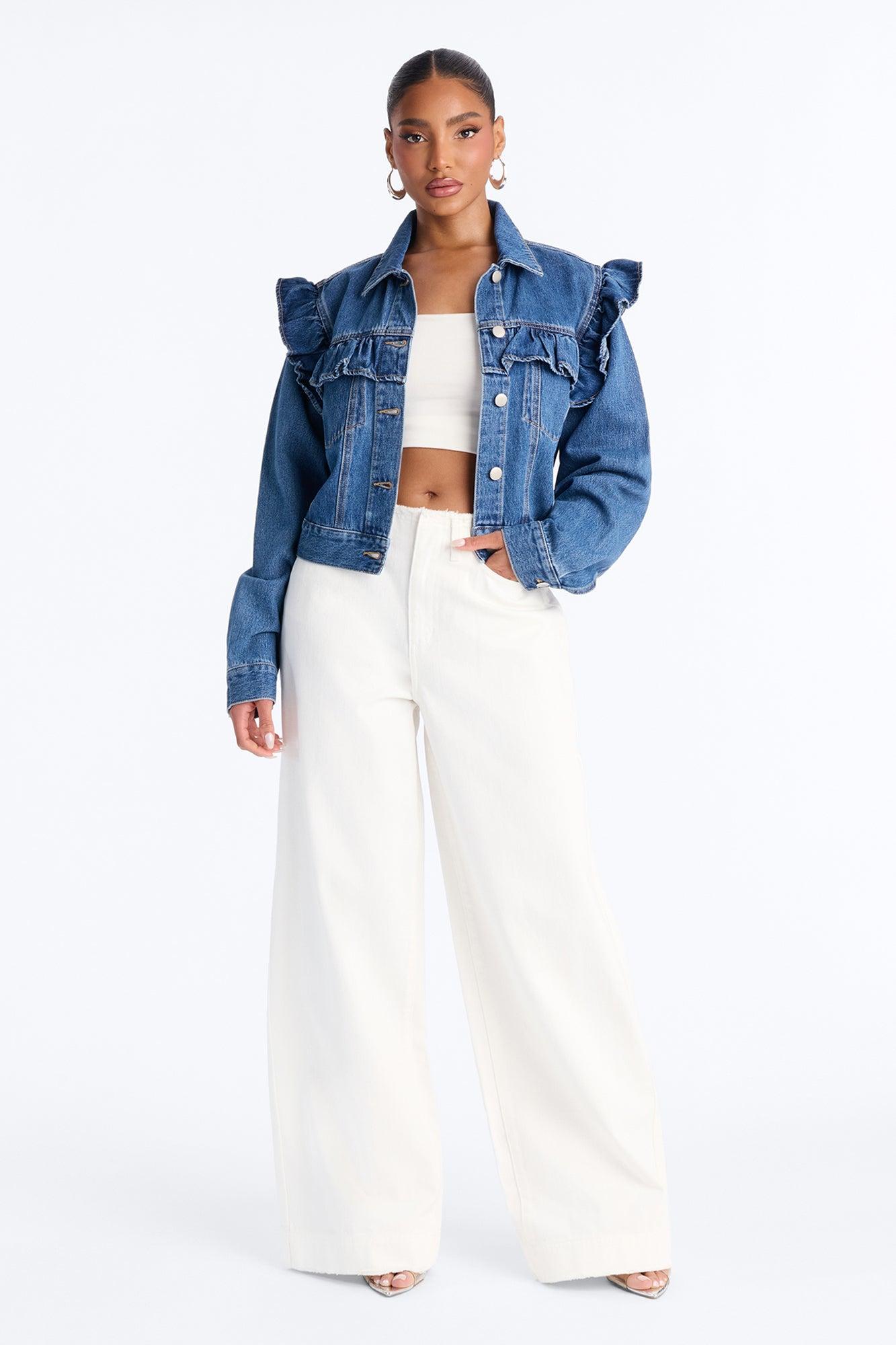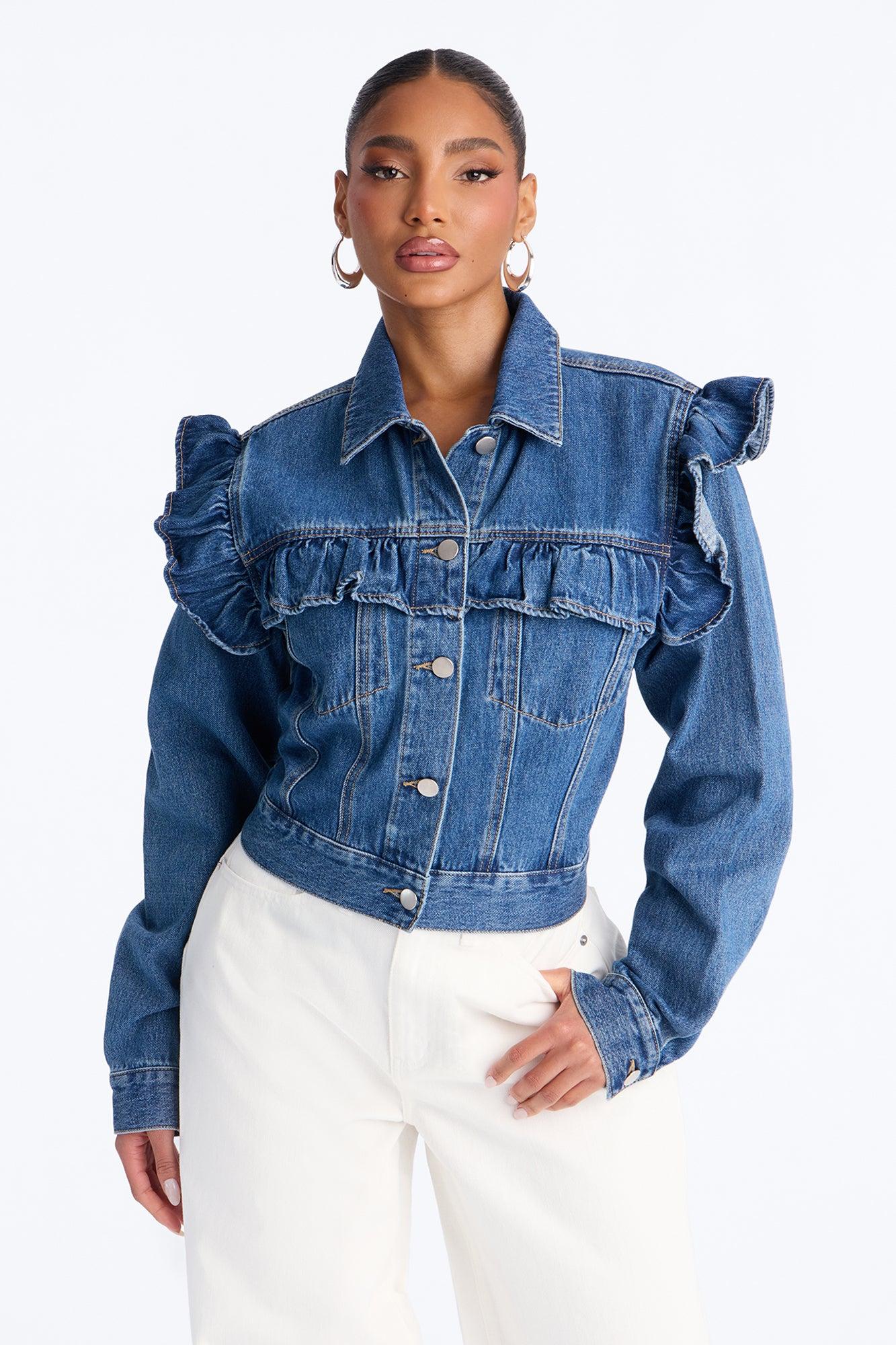 Scandi Ruffled Denim Jacket - Dark Wash Female